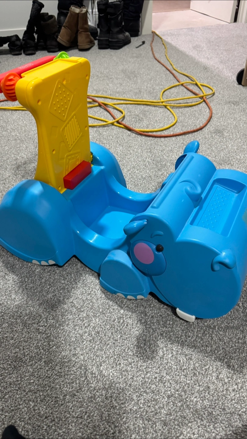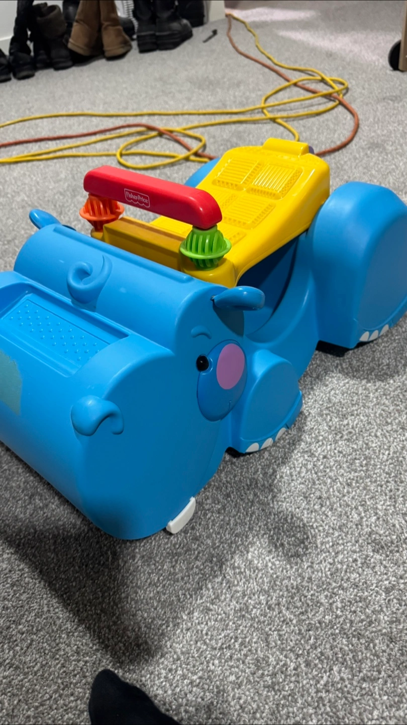 A cute blue hippo ride-on toy by Fisher-Price! It's a fun way for little ones to scoot around.