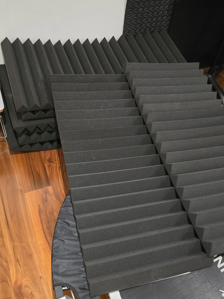 Selling acoustic foam panels, perfect for sound dampening in a bedroom, studio or home! They are in great condition and ready to use. Three panels mounted on eight pieces of foam core for easy install. They can help improve the acoustics of any room for music or gaming!