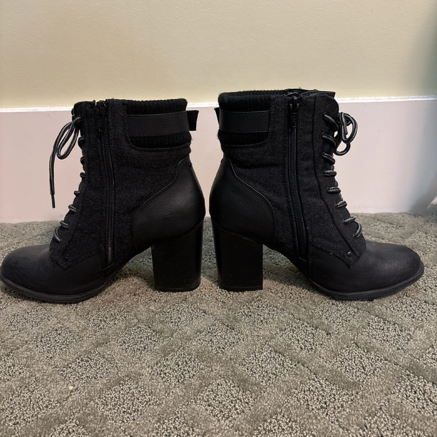 Selling a pair of black heeled boots from Call It Spring. They are in good condition and ready for a new home! Perfect for adding a bit of height and style to your outfit.
