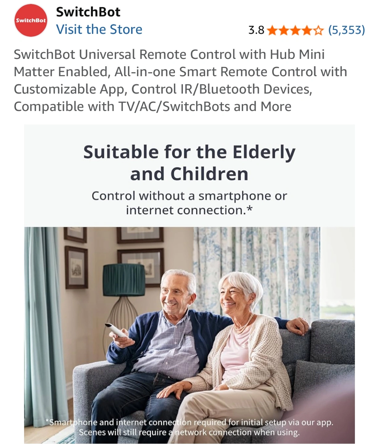 I'm selling a SwitchBot Universal Remote Control with Hub Mini Matter Enabled. It's compatible with TV/AC/SwitchBots and more! - Control IR appliances, Apple TV, Fire TV, and SwitchBot devices - Supports Matter for Apple Home Compatibility - Huge Infrared Code Database - Use to Start Smart Scenes