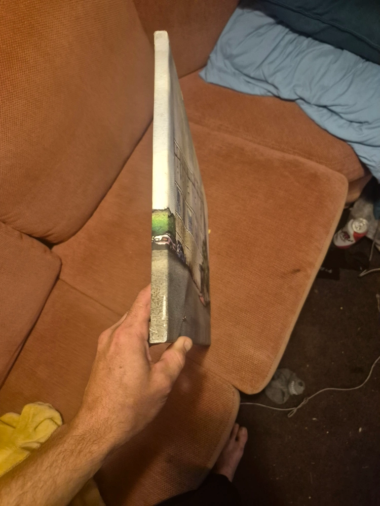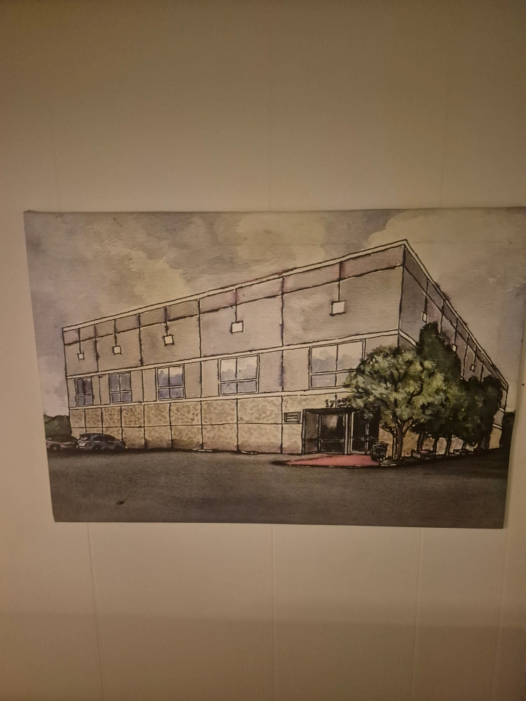 Selling a painting of the Dunder Mifflin building from The Office! It's a unique piece for any fan of the show. The painting is on canvas with a wooden frame.