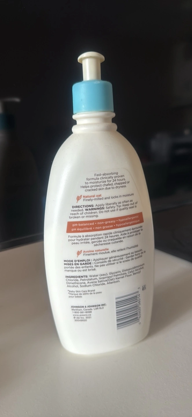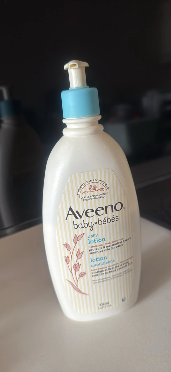 Selling a bottle of Aveeno Baby Daily Lotion. It's a natural oat, fragrance-free formula that gently moisturizes baby's sensitive skin for 24 hours. It's pH-balanced, non-greasy, and hypoallergenic. Contains 532 mL of lotion 📍 Pickup: Scarborough – Kingston & Midland intersection 💰 Price: $10 (Retail is around $15–20) Used only a few times – my baby’s skin didn’t suit it. Still has a good amount left (almost full).