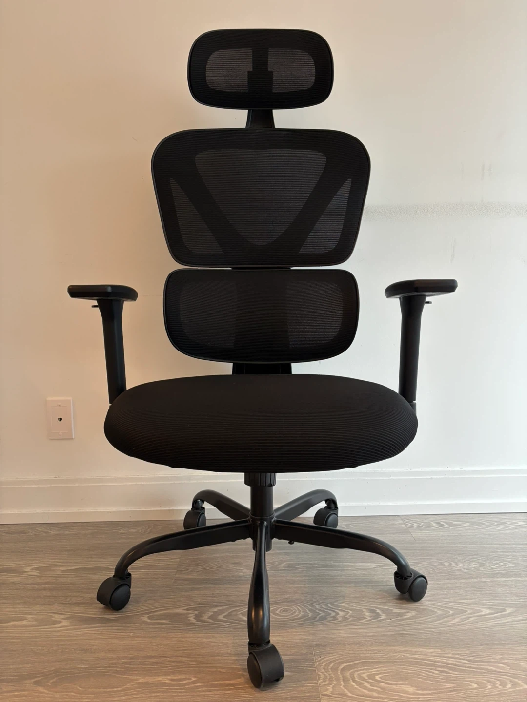 Selling a high-quality ergonomic office chair in excellent condition. Features include: - Breathable mesh back for comfort during long hours - Adjustable headrest, armrests, and lumbar support for personalized ergonomics - Cushioned seat for extra comfort - Smooth-rolling wheels and swivel base - Sleek black modern design, perfect for home or office setups Ideal for working from home, gaming, or study. Fully functional and barely used. Cash only, pick up at Dundas St E & Jarvis St