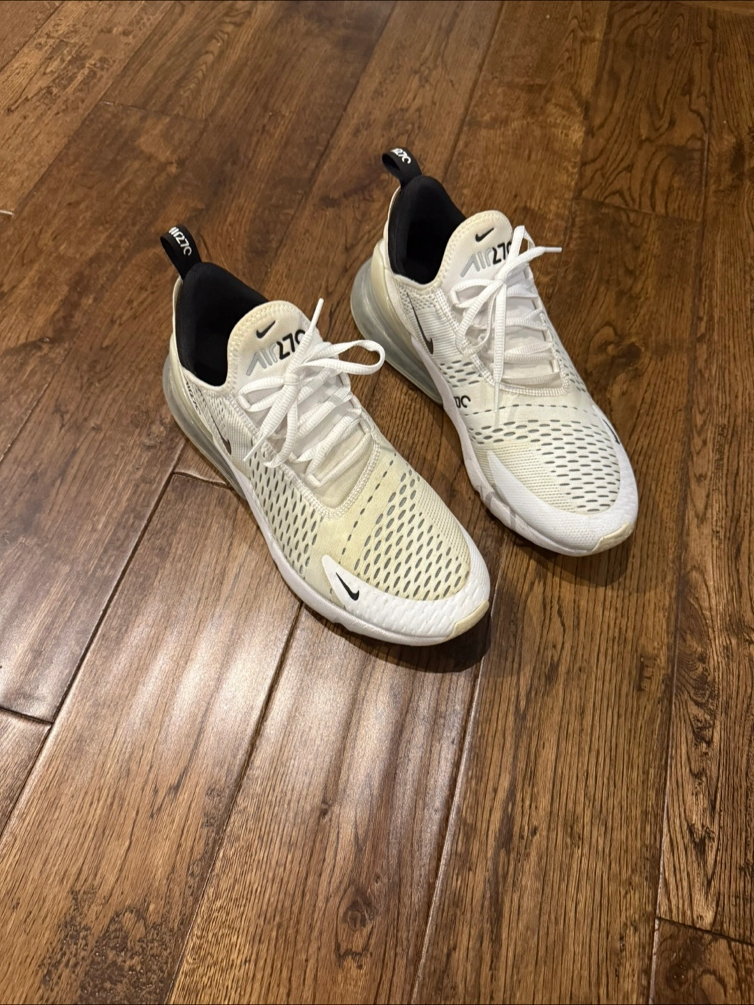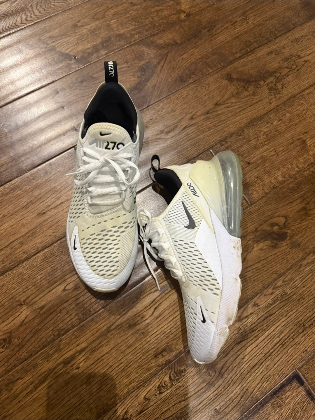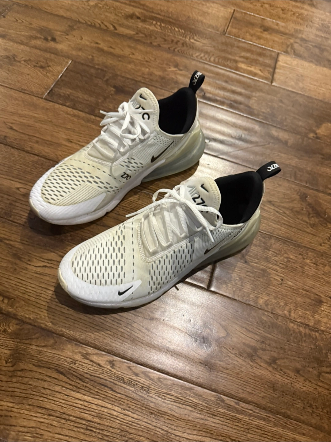 Selling a pair of Nike Air Max 270 sneakers in white. Great for everyday wear! **good condition** - size 11 - super comfortable - message for inquires - located at dufferin and Lawrence