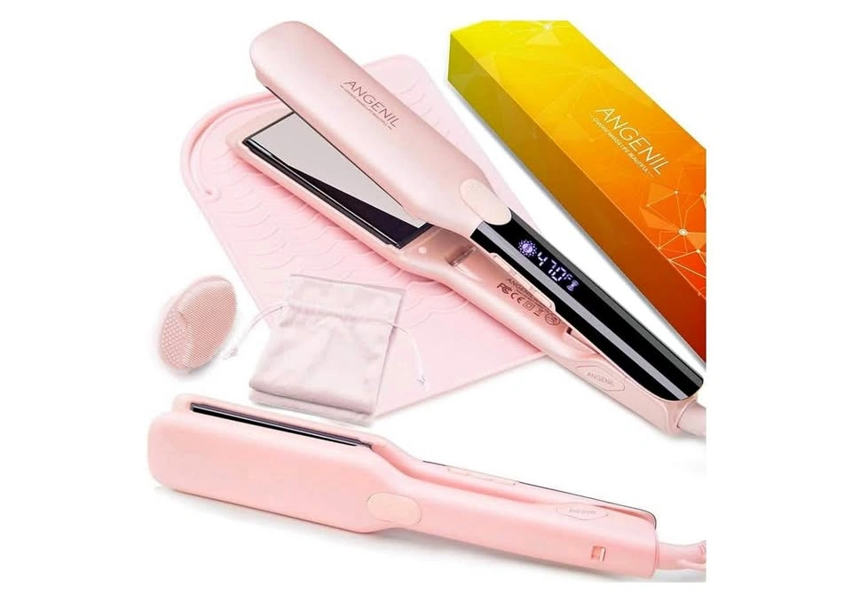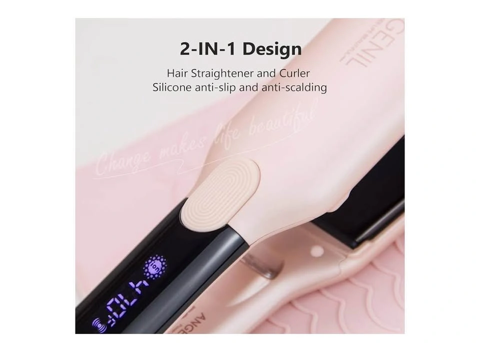 ANGENIL Pro Titanium Flat Iron Hair Straightener 1.75" Wide, Salon Grade Dual Voltage Fast Straightening and Curler 2-in-1 with Heat Resistant Silicone Mat, Large LCD Display, 15s Fast Heating.