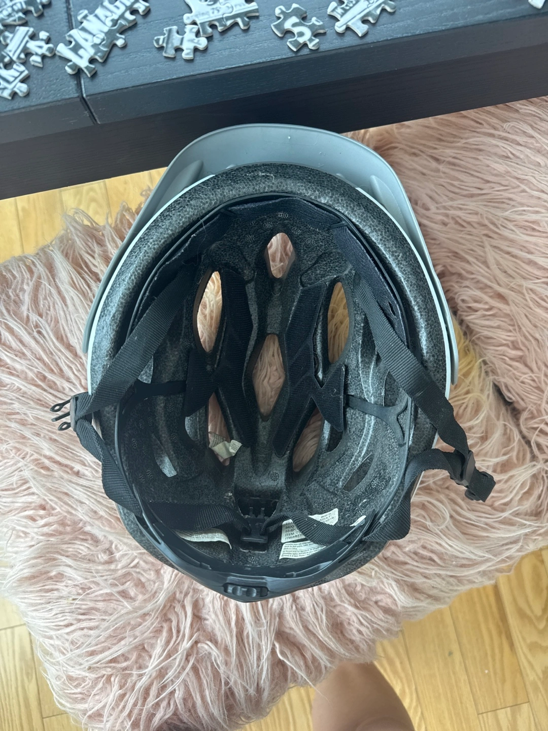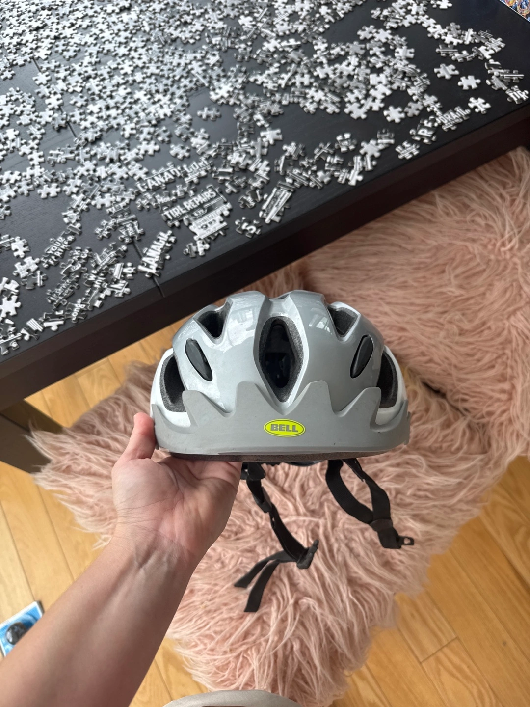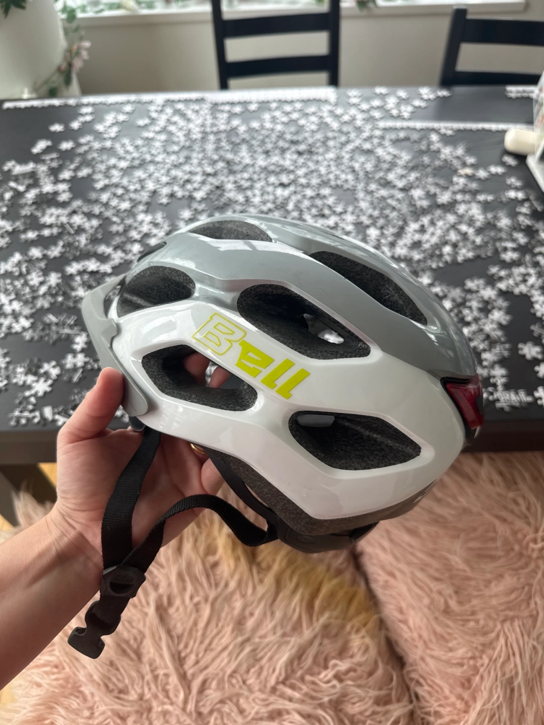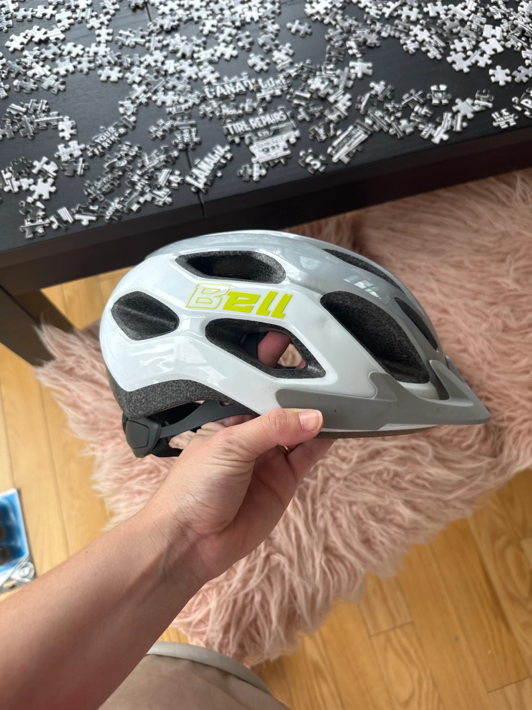 Selling a Bell bike helmet in great condition! It's a stylish grey and white colour. Perfect for biking around town or hitting the trails. It's ready for a new owner!