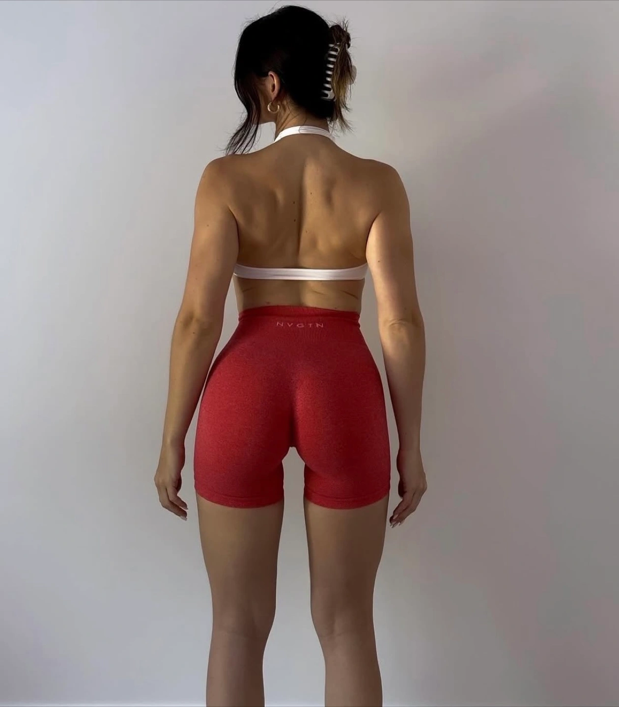 These are NVGTN Pro Seamless Shorts. They're a bold and beautiful colour and great for working out! Barely ever worn. They are high waisted. NVGTN sizing runs small. It says an L but it’s a 27 inch waist. (Aka a women’s 4 or a small) Happy for you to take a look at the sizing. I wear smalls to mediums. Originally $55