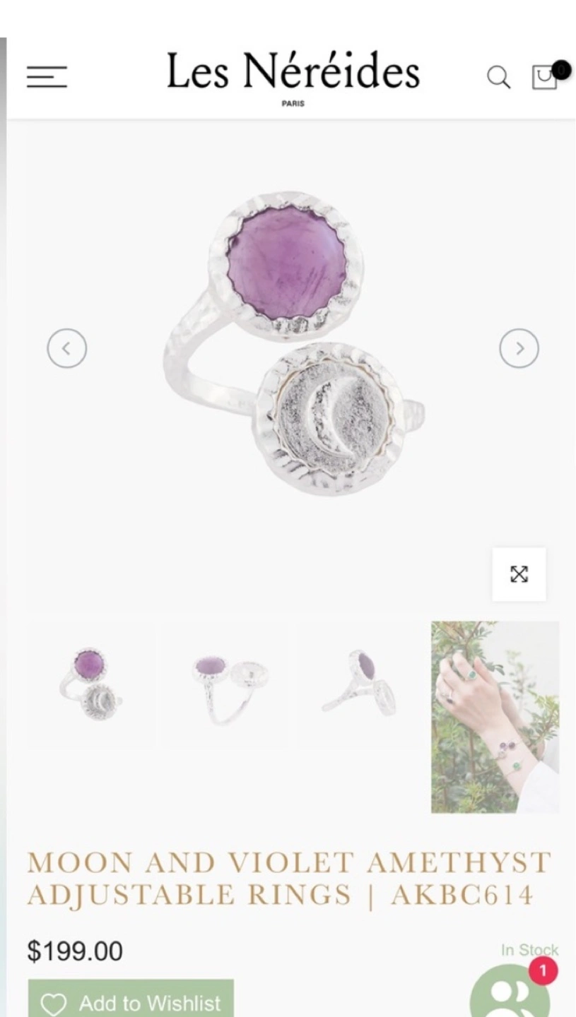 🇫🇷Les Nereides MOON AND VIOLET AMETHYST ADJUSTABLE RING
