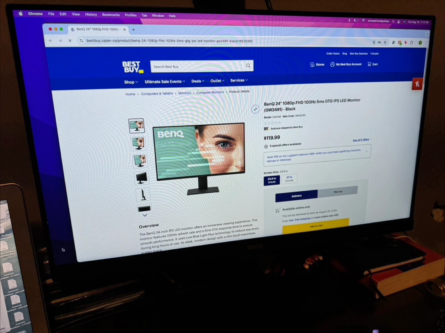 Selling a BenQ 24-inch 1080p FHD IPS monitor. It offers an immersive viewing experience. Key features: - 100Hz refresh rate - 5ms response time to ensure smooth performance - Low blue light technology to reduce eye strain during long hours of use - Slim bezel design with a sleek black aesthetic Original price $119.99 Asking $90 or best offer. Selling because I’m moving Practically brand new
