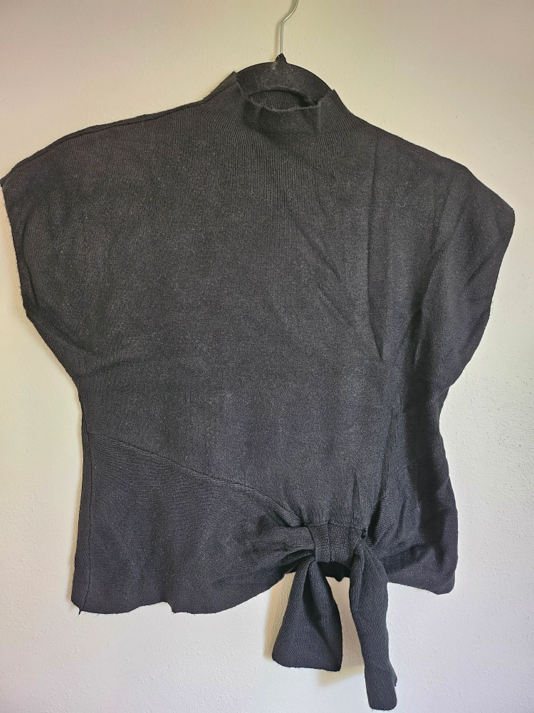 A stylish black knit top with a front tie detail! It's a unique piece that can be dressed up or down. The knit material is comfy and perfect for layering. Brand new. #bangkokfashion