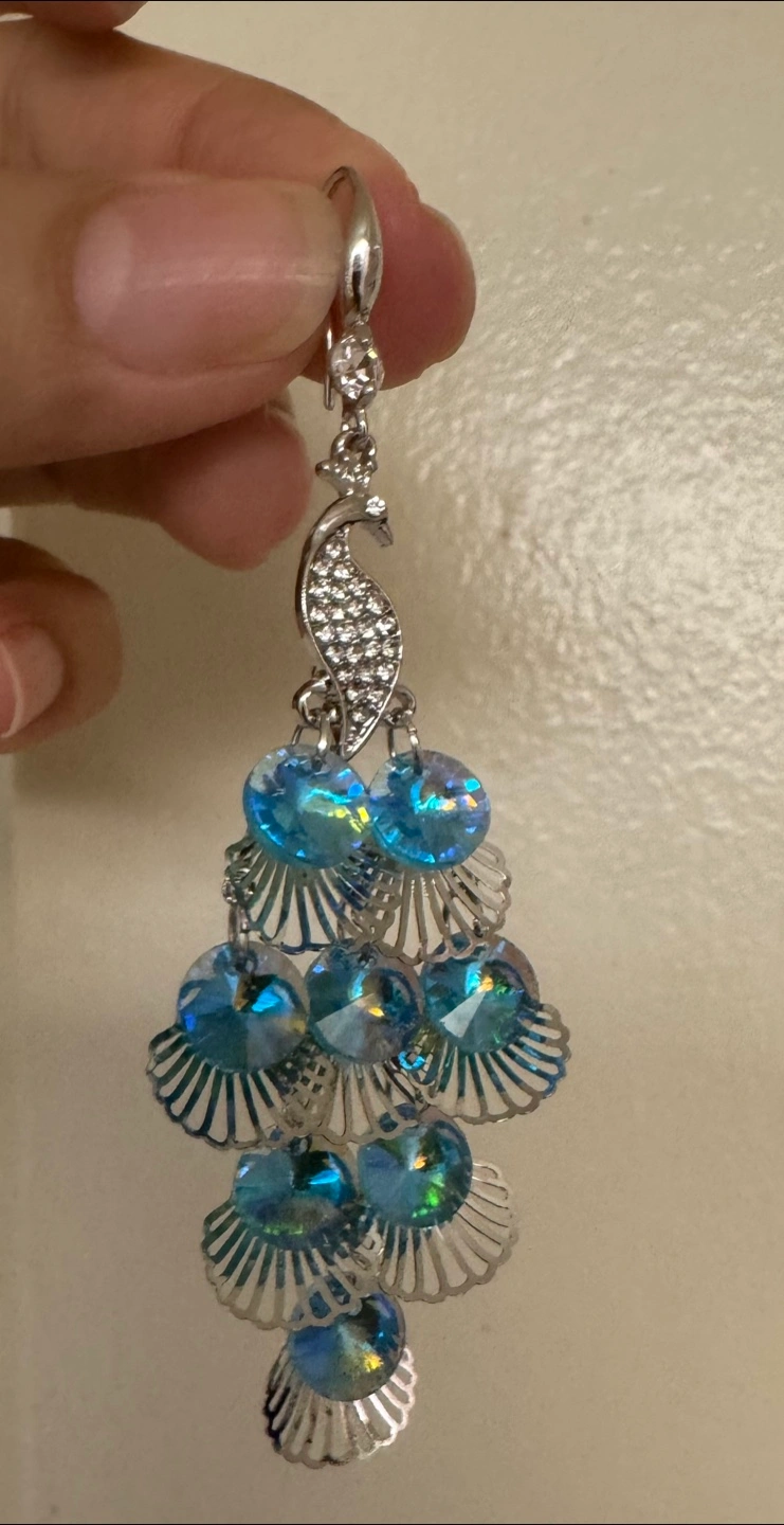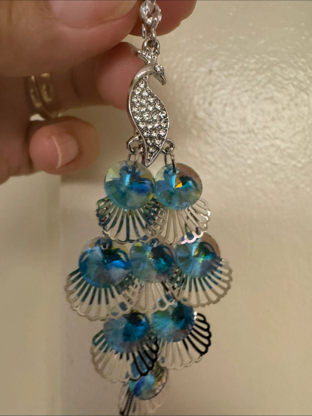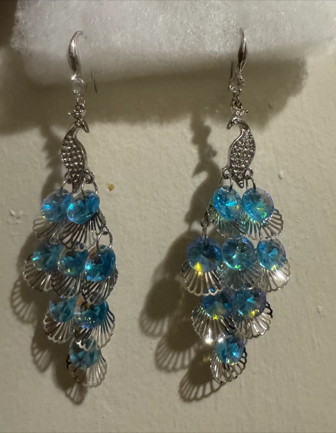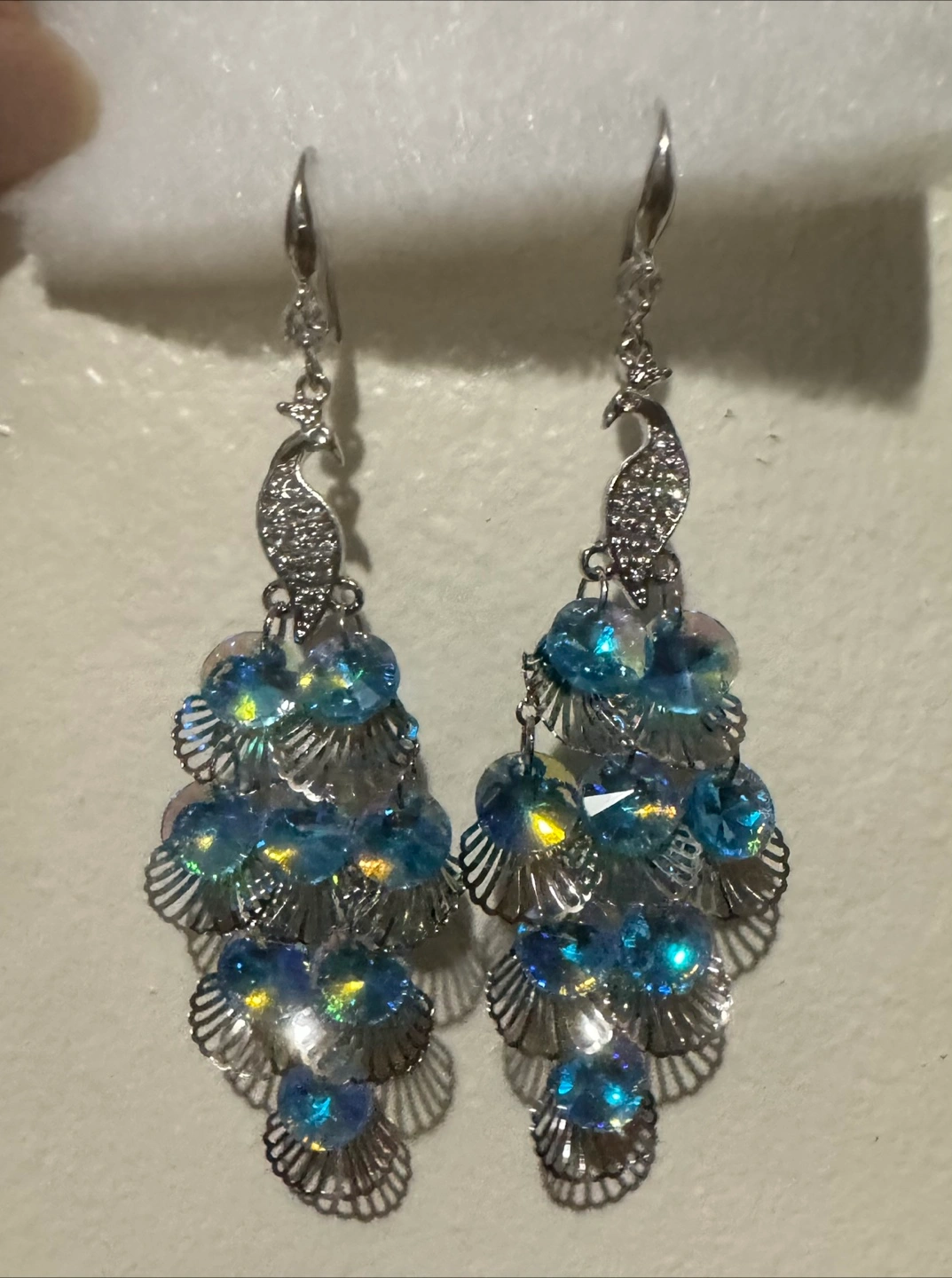 These are a pair of beautiful peacock dangle earrings. They are silver 925 in colour with blue accents. They are in great condition! Cash Pick up near Lawrence and Keele