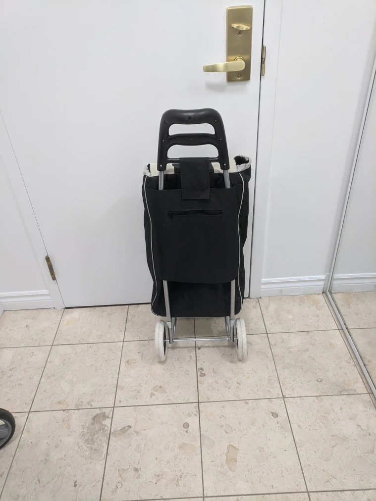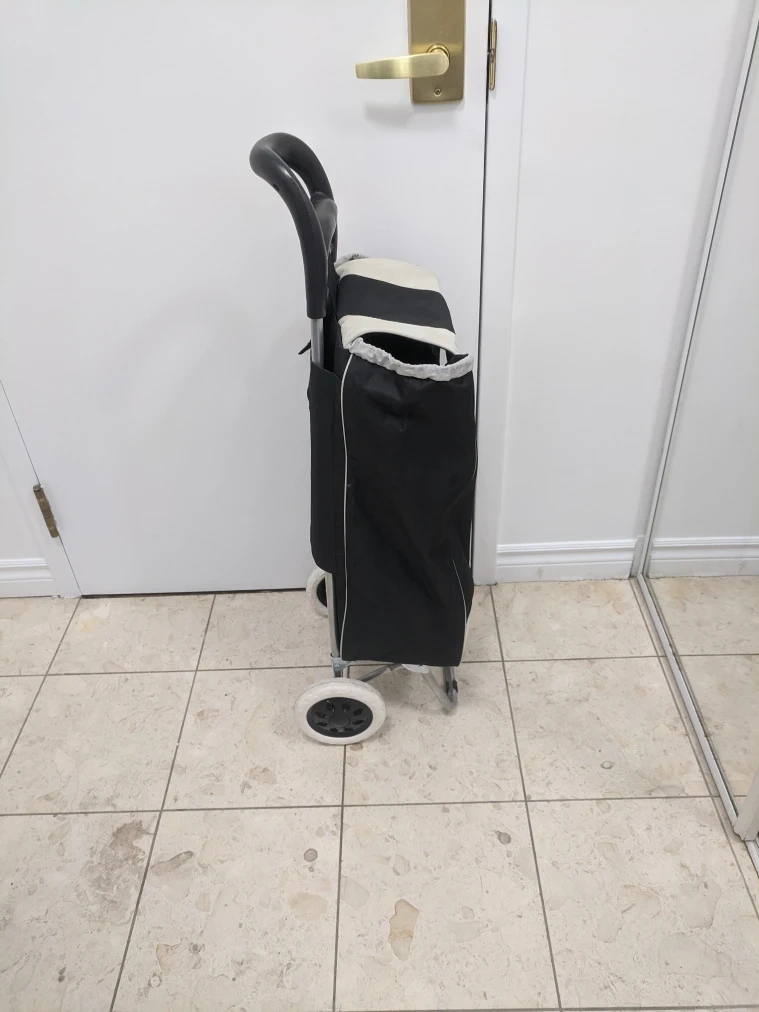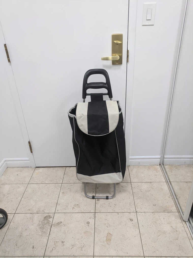 Selling a handy shopping cart in black and white! It's perfect for trips to the grocery store or farmers' market. Easy to maneuver and folds up for convenient storage. pretty new. good condition. Pick up at 195 Merton Street Toronto Or pick up at Subway station Davisville. And I can deliver it to your house but you need to pay me another $3. Thanks.