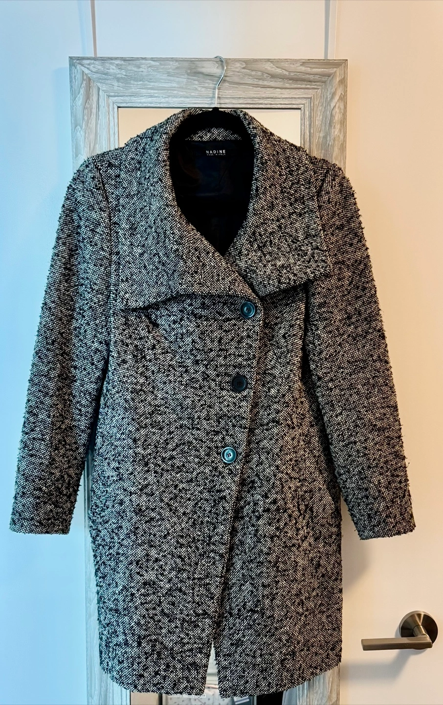 Nadine Pea Coat_Woman - Size 40 - Wool Blend Selling a Nadine coat in size 40. It's a stylish wool blend coat, perfect for cooler weather. The material is 46% acrilico, 36% wool, and 18% polyester.