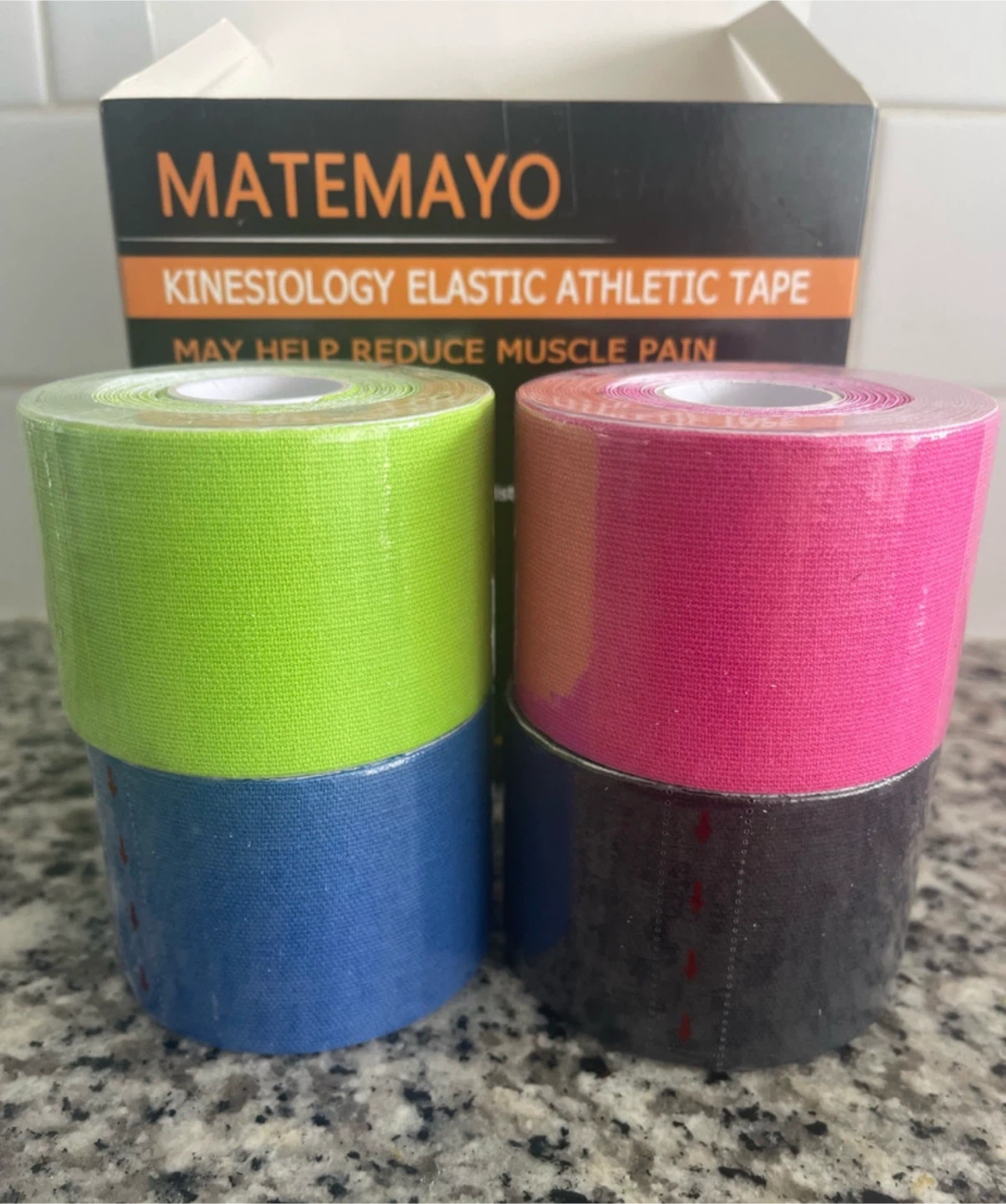 I'm selling a set of Matemayo Kinesiology Elastic Athletic Tape. The box includes 4 rolls of tape in different colours. Here are some key features: - Helps reduce muscle pain - Supports muscles and joints - 100% waterproof & sweat resistant - Wear in the shower or pool - Skin friendly - Wear up to 3 days Each roll has 80 pre-cut strips. One size fits all!