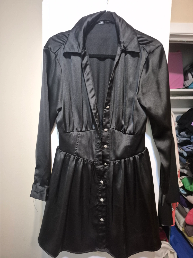 Selling a stylish Zara black dress in size M. It's in great condition and ready for a new home! The dress features a flattering silhouette and is perfect for various occasions. It's made of a comfortable material.