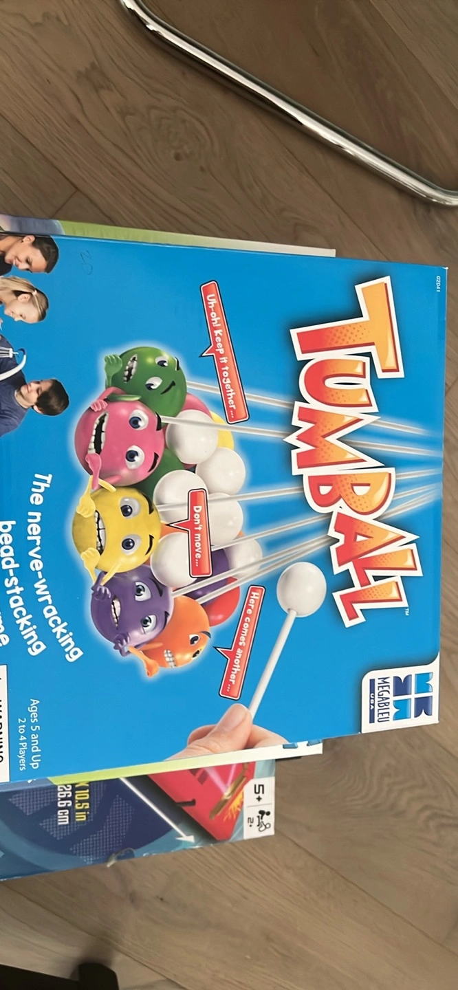 Selling a gently used Tumball game by Megableu! It's a nerve-wracking bead-stacking game suitable for ages 5 and up, and can be played by 2 to 4 players. The box measures approximately 10.5 inches (26.6 cm). Pick up younge and Lawrence