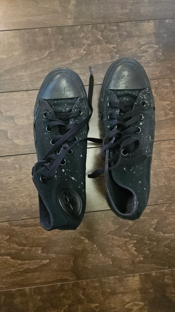 Converse high-top shoes in size 5 1/2. Color is actually a really dark green that is closer to black. It has some bleach stains ๐ Pick up at the pinned location, but can meet at Flemingdon Shopping Centre or East York Town Center