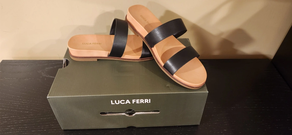These Luca Ferri Rheallan sandals are a stylish addition to any wardrobe! They are a size 6 and come in their original box. The original price was $59.99. These sandals are in great condition and ready for a new home