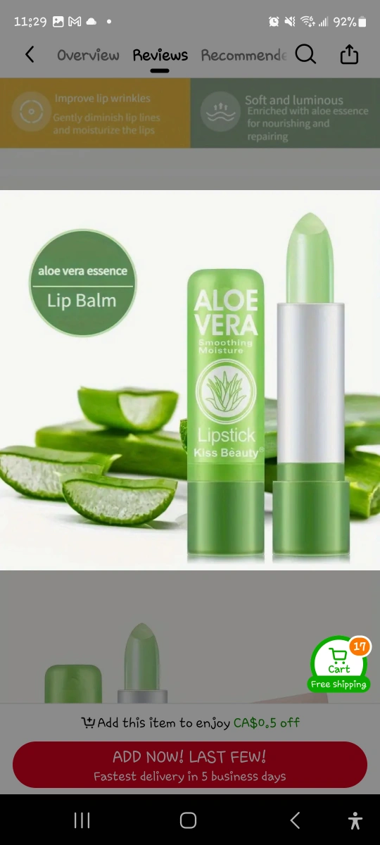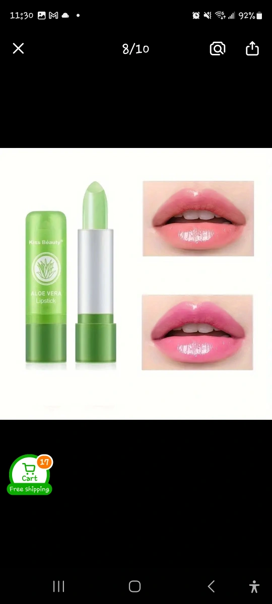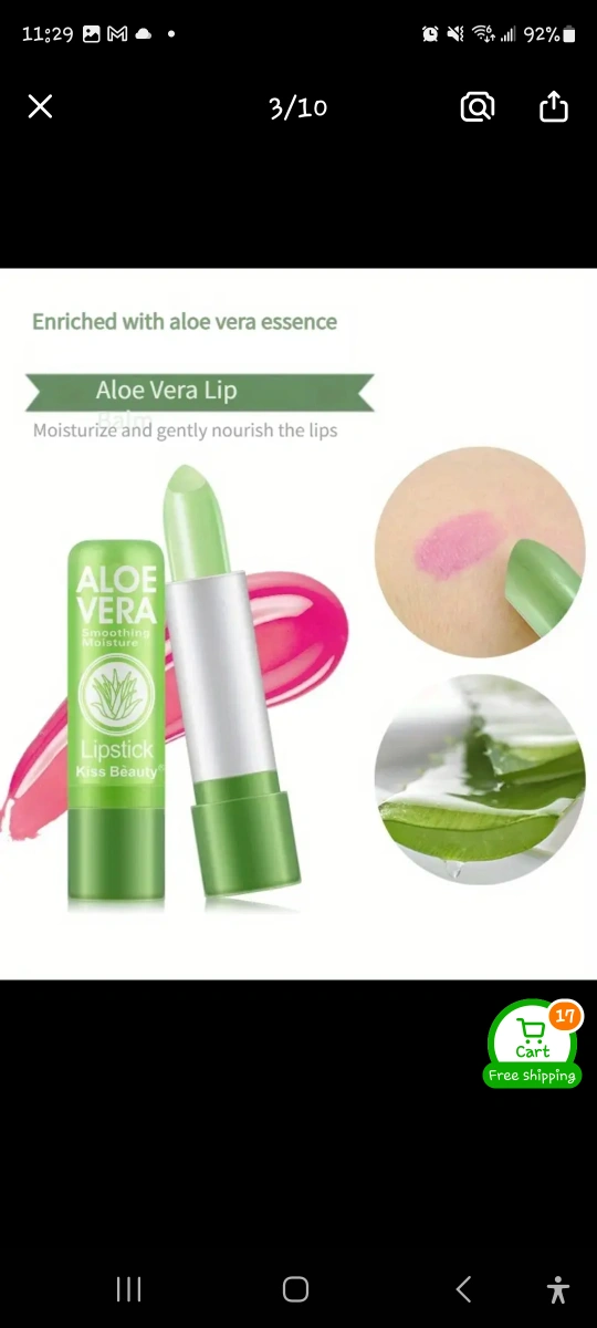 This is a Kiss Beauty Aloe Vera Lipstick. It moisturizes and gently nourishes the lips. Enriched with aloe vera essence, it improves lip wrinkles and is soft and luminous. The pink π hue is generated by the temperature of your lips π