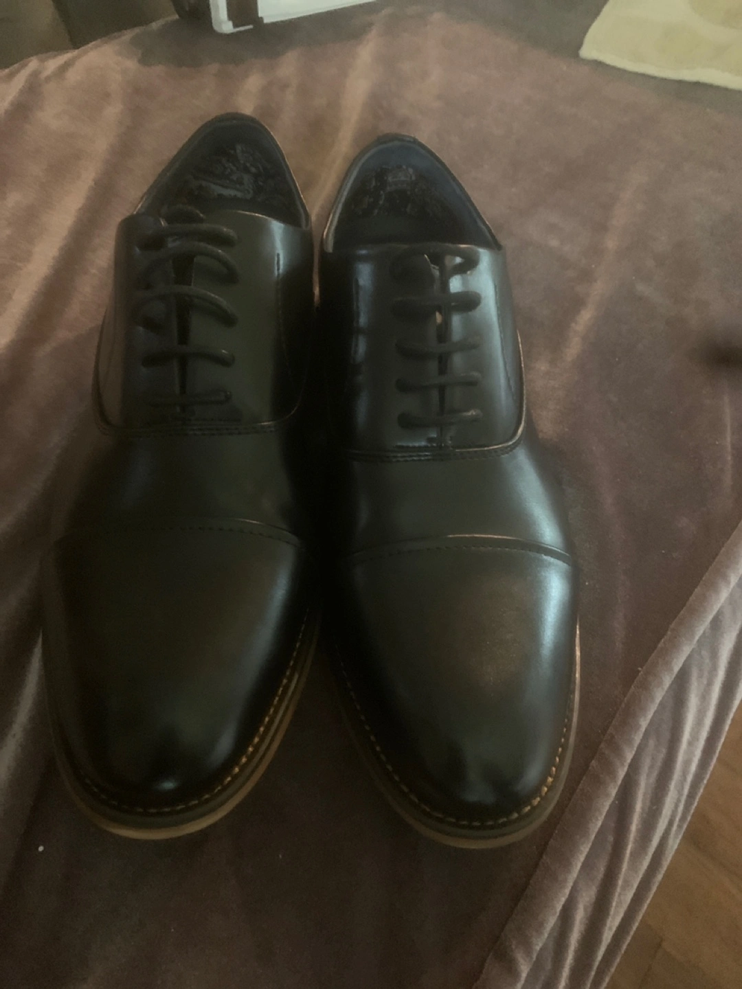 Selling a pair of black dress shoes in size 7.5! They're in great shape and ready for a new home. These shoes are perfect for any formal event or just to dress up your everyday look. Originally bought for $86.98