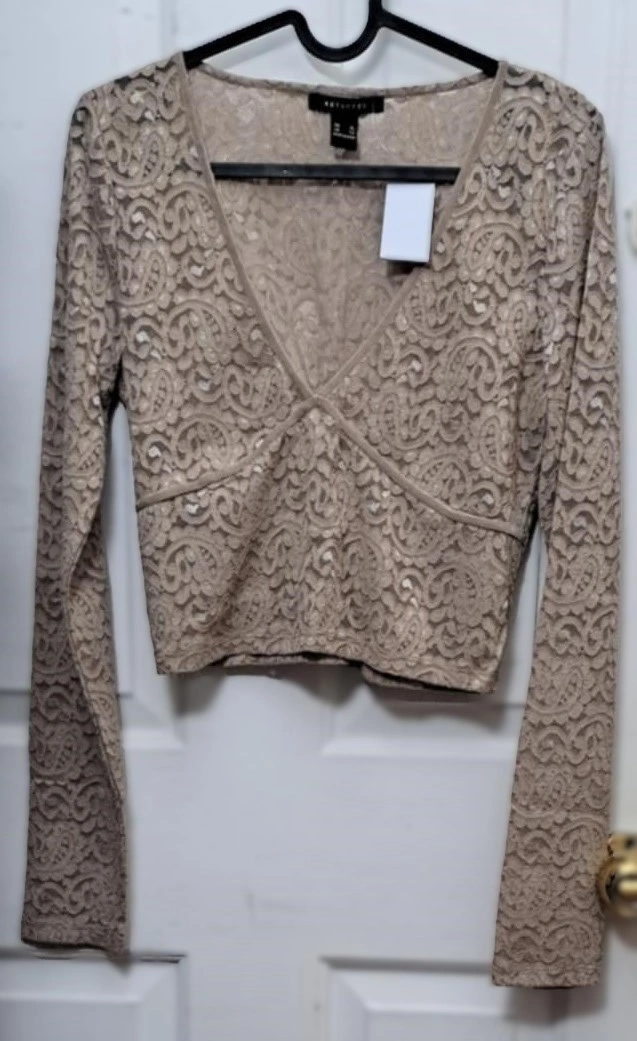 A Revamped long-sleeved top with floral lace and V-shaped velvet neckline have a design which is very stylish. A style that is both casual and elegant, but also comfortable for everyday wear. Casual everyday clothing for women/teens throughout the year. It is made made of 90% Polyester, 10% Spandex, body length measures 16''. Slim fit [size XL but fits L].