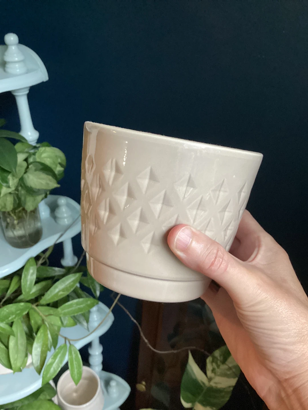 Selling a cute grey ceramic plant pot! It has a geometric pattern and a neutral colour that would look great with any plant. Perfect for adding a touch of style to your indoor garden or home decor. Used but no chips or cracks. $7 cash and pick up only. Located near Parliament and Bloor.