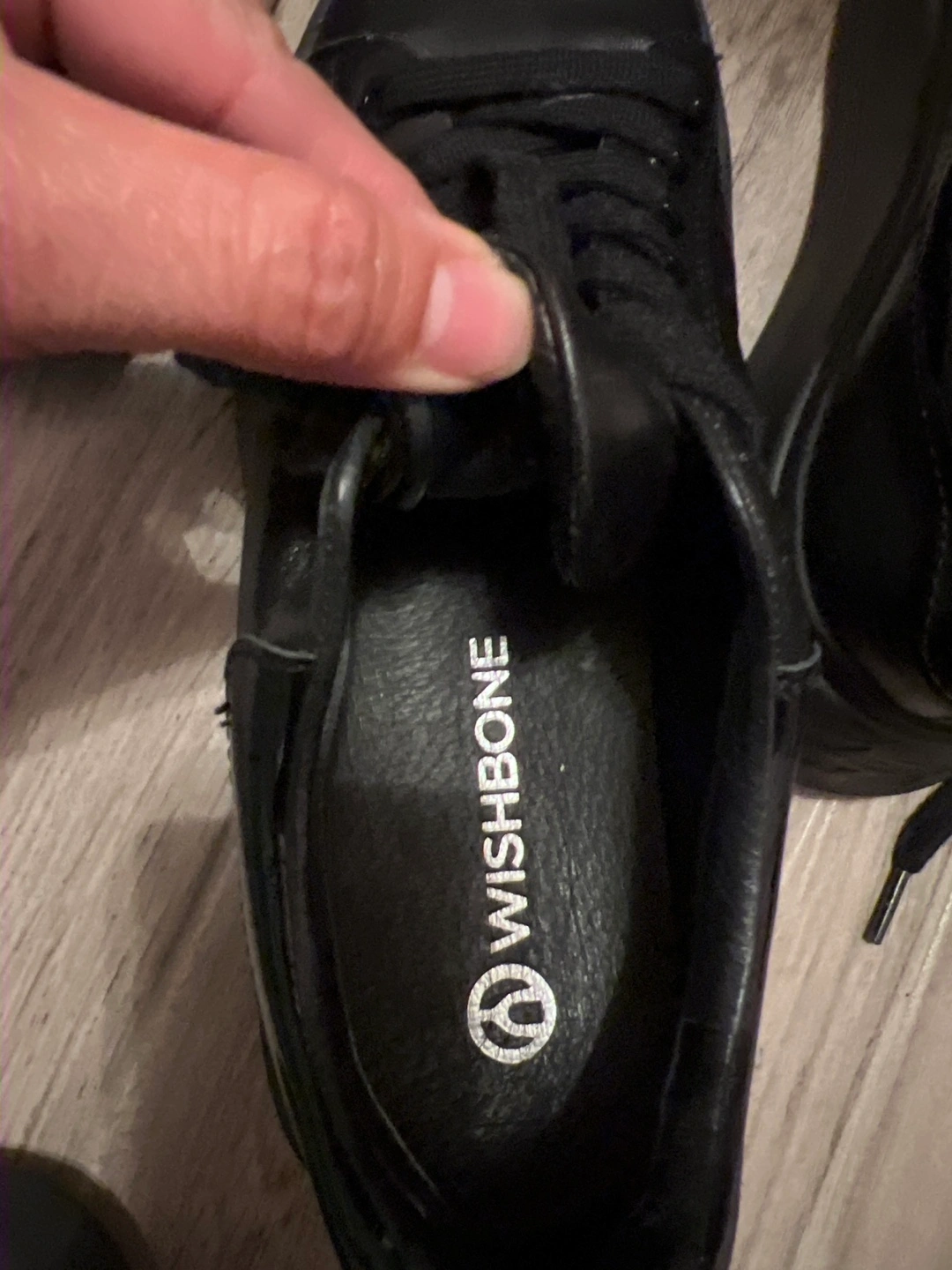 Selling a pair of Wishbone platform sneakers in black. They are size 6.5 M. These shoes have a unique platform design, perfect for adding some height and style to your look Pick up younge and Lawrence