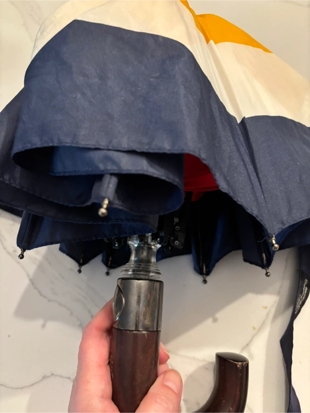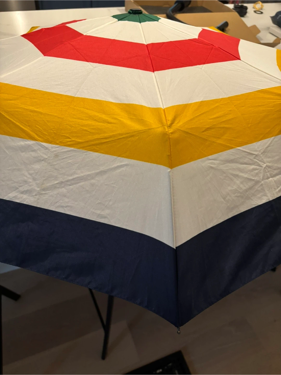 Selling a Hudson's Bay Company umbrella. It has the classic HBC stripes in red, yellow, white, and navy. Great for keeping dry on those rainy days! Working condition nice heavy handle