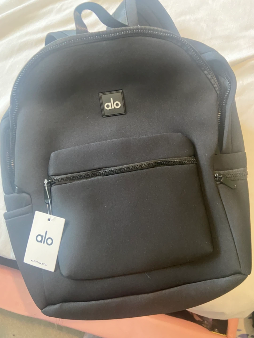 Selling a black Alo Yoga backpack. Brand new and Perfect for carrying your essentials to yoga class or for everyday use. It features multiple compartments to keep your belongings organized.