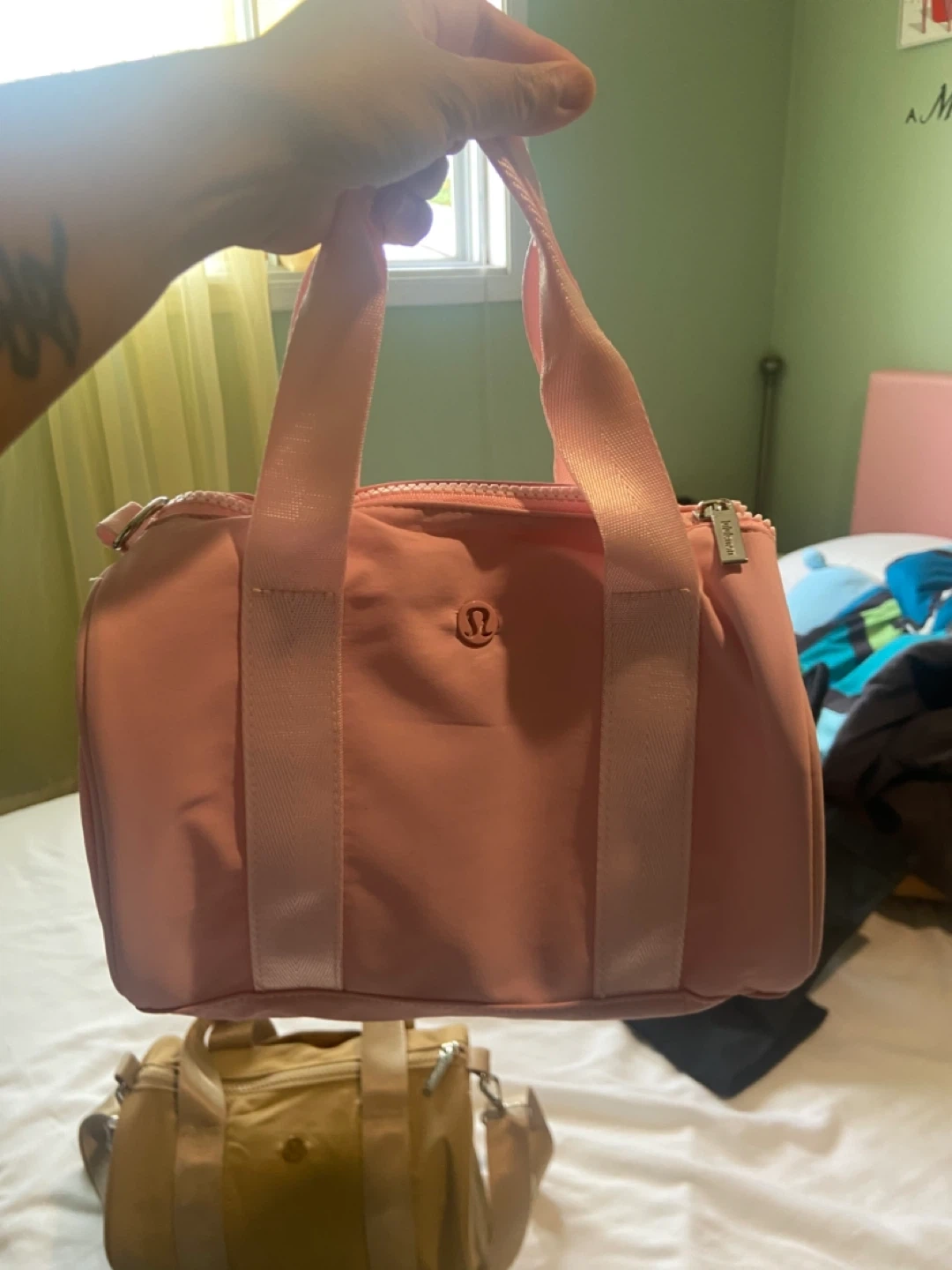 Selling a cute Lululemon mini duffle bag in pink! Brand new and perfect for carrying your essentials. It's lightweight and portable, making it ideal for everyday use or travel