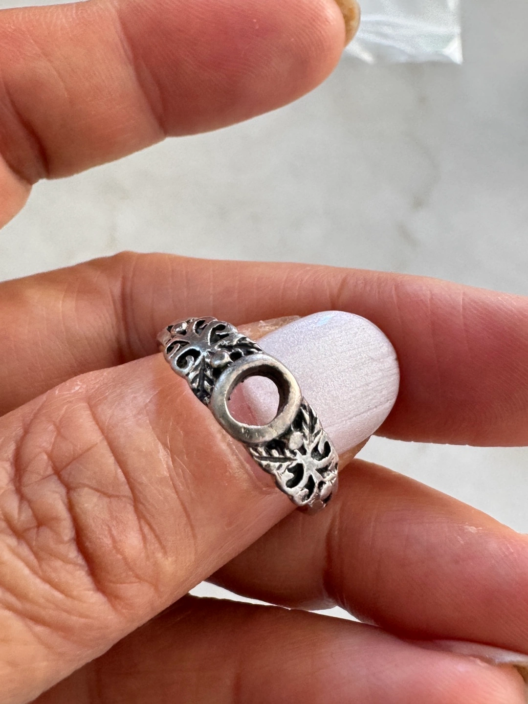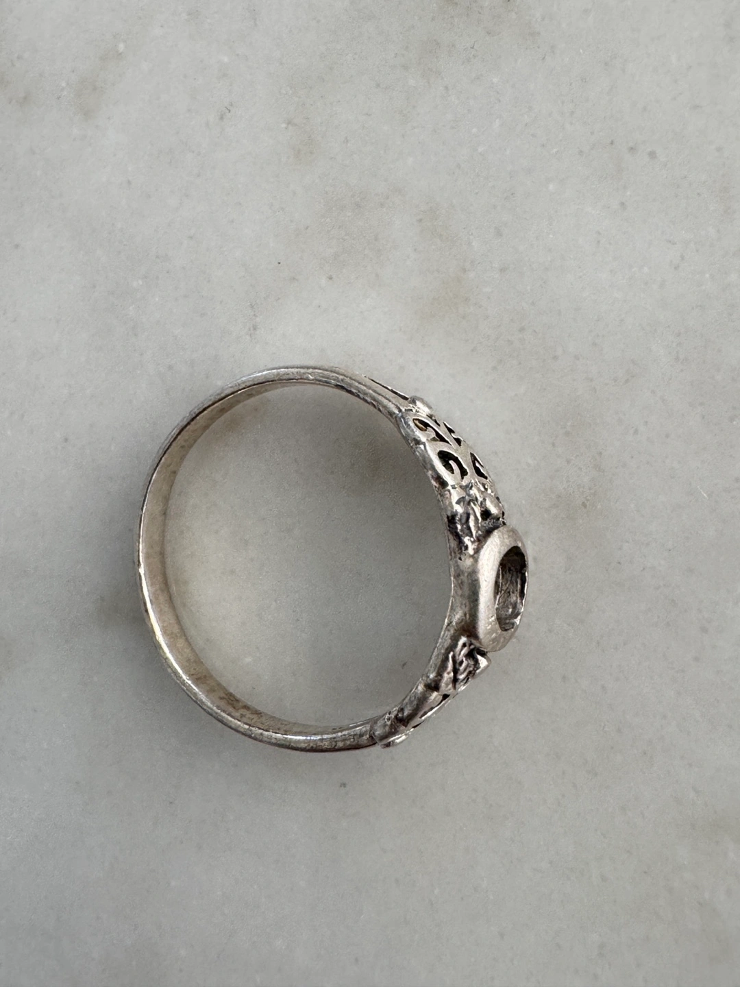 Selling a unique silver ring! It has a cool, intricate design. It's in great condition and ready for a new home
