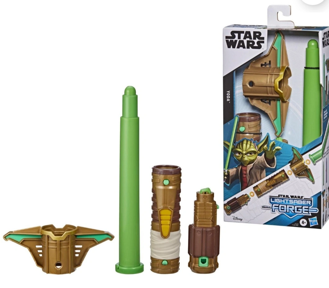 Get ready to duel with this Star Wars Yoda Lightsaber Forge toy! It's perfect for young Padawans eager to join the Jedi Order. Kids can imagine their own roleplay duels with Lightsaber Forge featuring extendable blades inspired by the Star Wars Galaxy! Kids ages 4 and up can create a Lightsaber and imagine battles with customizable roleplay toys inspired by the Jedi and Sith weapons from the Star Wars Galaxy! Use the included blade, cap, cover, and core to create a Lightsaber and imagine harnessing the power of the Force while battling in pretend Lightsaber duels! And with parts pieces that are compatible across the entire Lightsaber Forge line, boys and girls can mix and match to create, customize, and master 1000s of combinations! (Total combinations includes all Lightsaber Forge products. Additional Lightsaber Forge products each sold separately. CHARACTER-INSPIRED DESIGN & DECO: Star Wars Lightsaber Forge Lightsabers feature character-inspired design and deco, so kids ages 4 and up can imagine epic pretend Lightsaber battles in the Star Wars Galaxy. CREATE THEIR OWN: The Lightsaber Forge Yoda Lightsaber toy is comprised of four parts -- the blade, cap, cover, and core -- allowing kids to assemble their Lightsaber for imaginary duels. CUSTOMIZABLE LIGHTSABER: Pieces are compatible across the entire Lightsaber Forge line so kids can mix and match. The purchase of just one additional Lightsaber unlocks 16 total combinations! (Each sold separately. Subject to availability.) MASTER 1000s OF COMBINATIONS: Use pieces across the Lightsaber Forge line to create 1000s of amazing combinations. Master your favorite combination to imagine becoming a true Jedi or Sith (Total combinations includes all Lightsaber Forge products. Each sold separately. Subject to availability.) LOOK FOR OTHER ROLEPLAY TOYS FROM A GALAXY FAR, FAR AWAY: Gear up with a galaxy of great movie- and entertainment-inspired Star Wars roleplay toys (Each sold separately. Subject to availability.) "MAY THE FORCE BE WITH YOU!" Ages 4 and up. WARNING: Small parts may be generated. CAUTION: Do not swing, poke, or jab at people or animals. Please look closely at the attached photos to go along with the description and the condition of the item. Willing to ship at the Buyers expense. Please see my many other listings. Thank you for looking. Have a Happy Day! 🙂