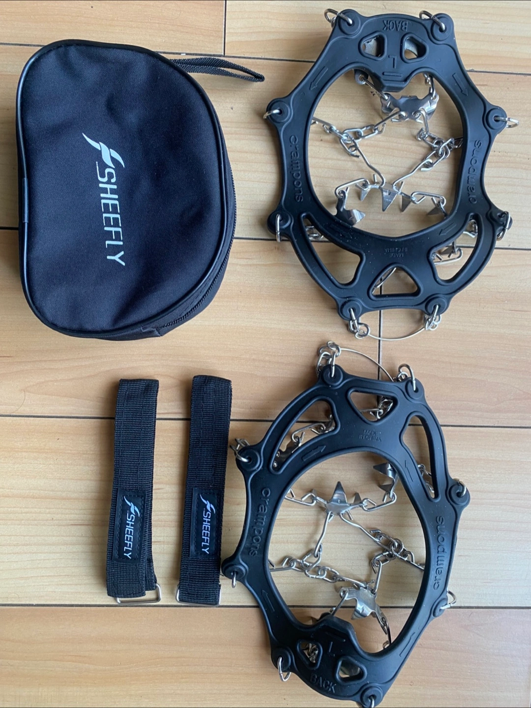 Selling a pair of Sheefly crampons, perfect for winter walks and hikes! They come with a handy carry bag and straps for easy storage and transport. The crampons themselves are in great shape and ready to provide excellent traction on icy surfaces. Stay safe and enjoy the outdoors!