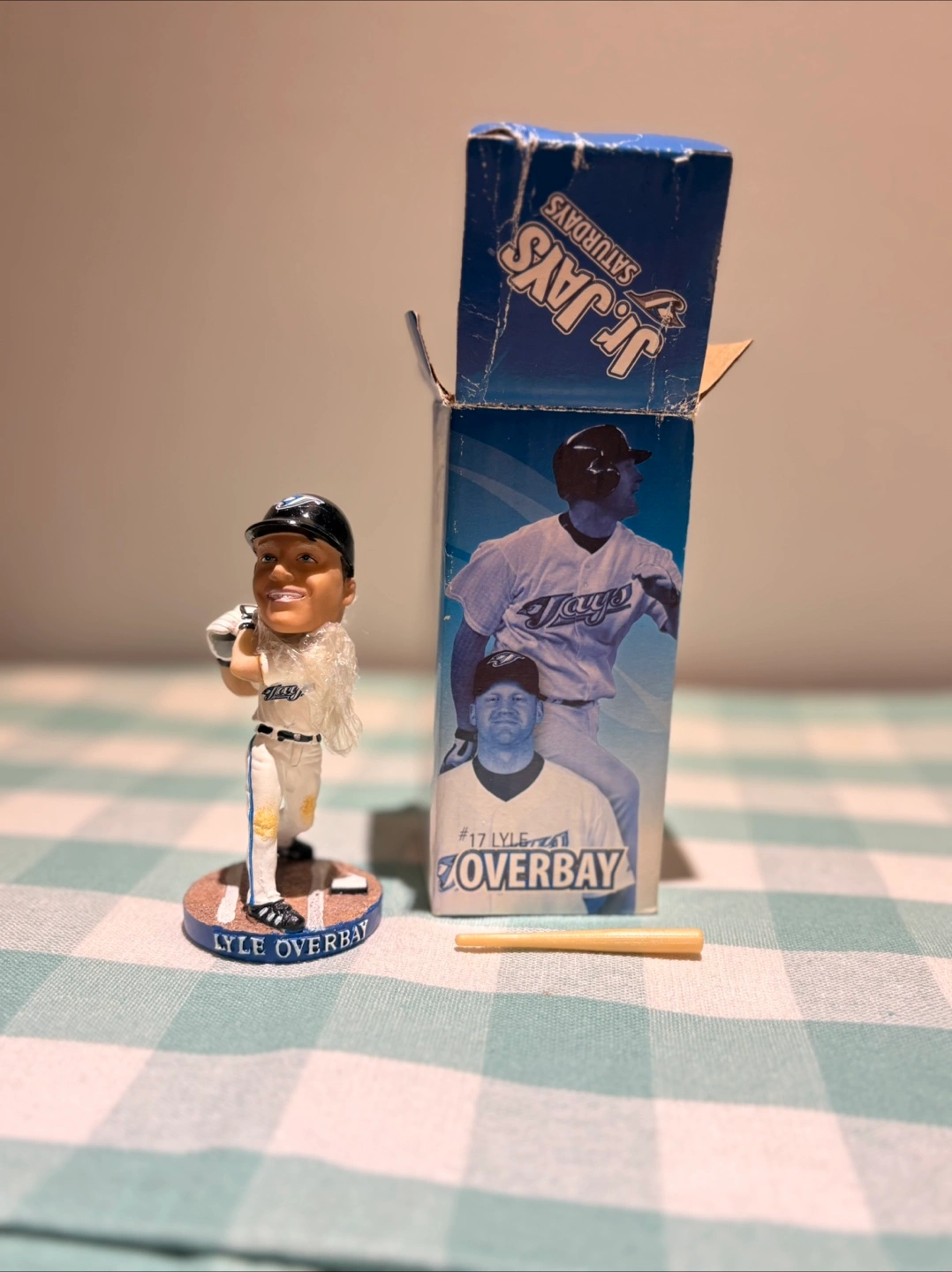 Selling a Toronto Blue Jays Lyle Overbay bobblehead. It comes with the original box. Has not been taken out of the box until these pics were taken. No scuff marks or breaks. Let’s negotiate a deal!! Willing to lower price if bought with other listings