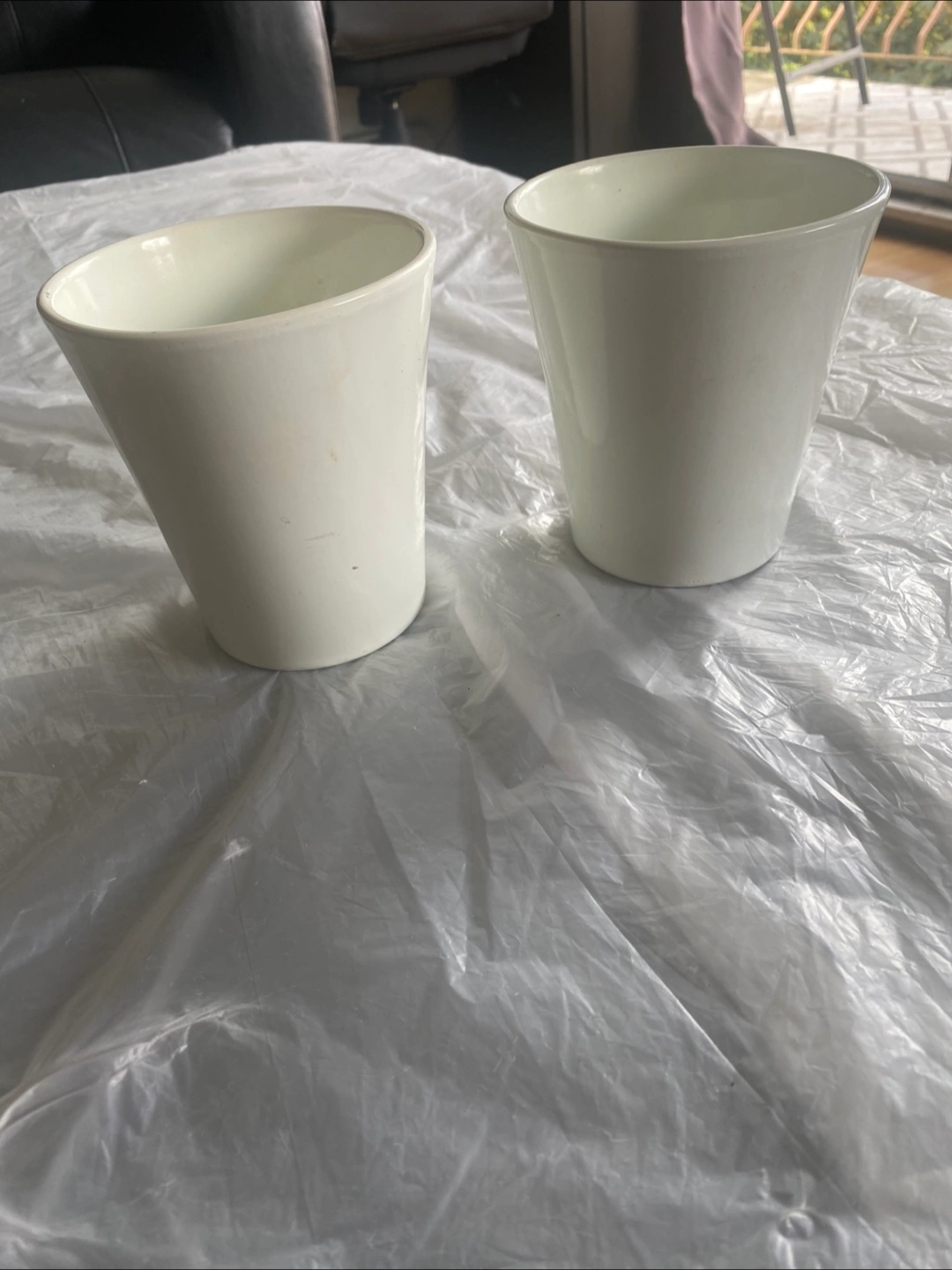 Selling a set of two simple white ceramic flower pots! They're in great condition and ready to add a touch of minimalist charm to your space
