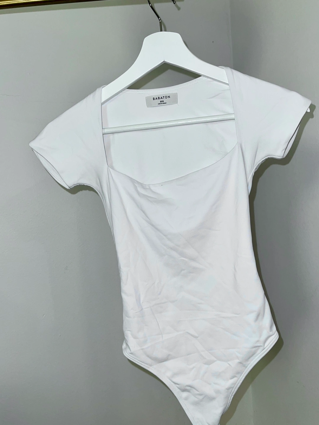 Selling a white Babaton bodysuit in size 2XS. It's in great condition and ready for a new home! Only worn a few times and it didn’t fit me well.
