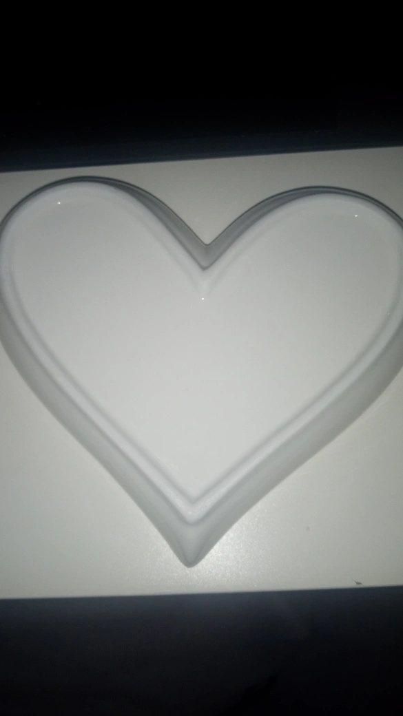 Here's a cute heart-shaped plate that would be perfect as a decorative piece! It features a colourful concentric heart design in purple, pink, teal, and blue on a white background, trimmed with gold. It would look lovely on a shelf or dresser