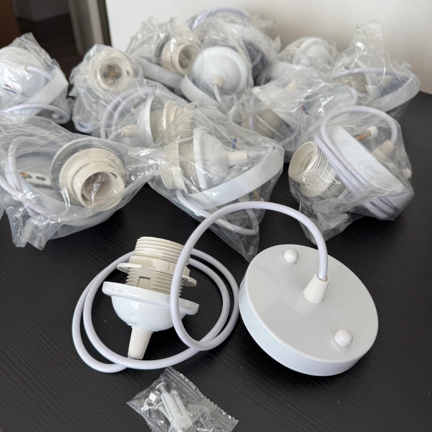 Selling a white pendant light fixture. It comes with all the necessary components for installation, including the ceiling canopy, cord, and socket. Perfect for adding a touch of simple elegance to any room $5 for one $30 for 15 pcs