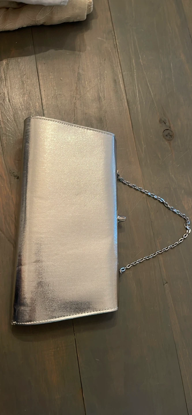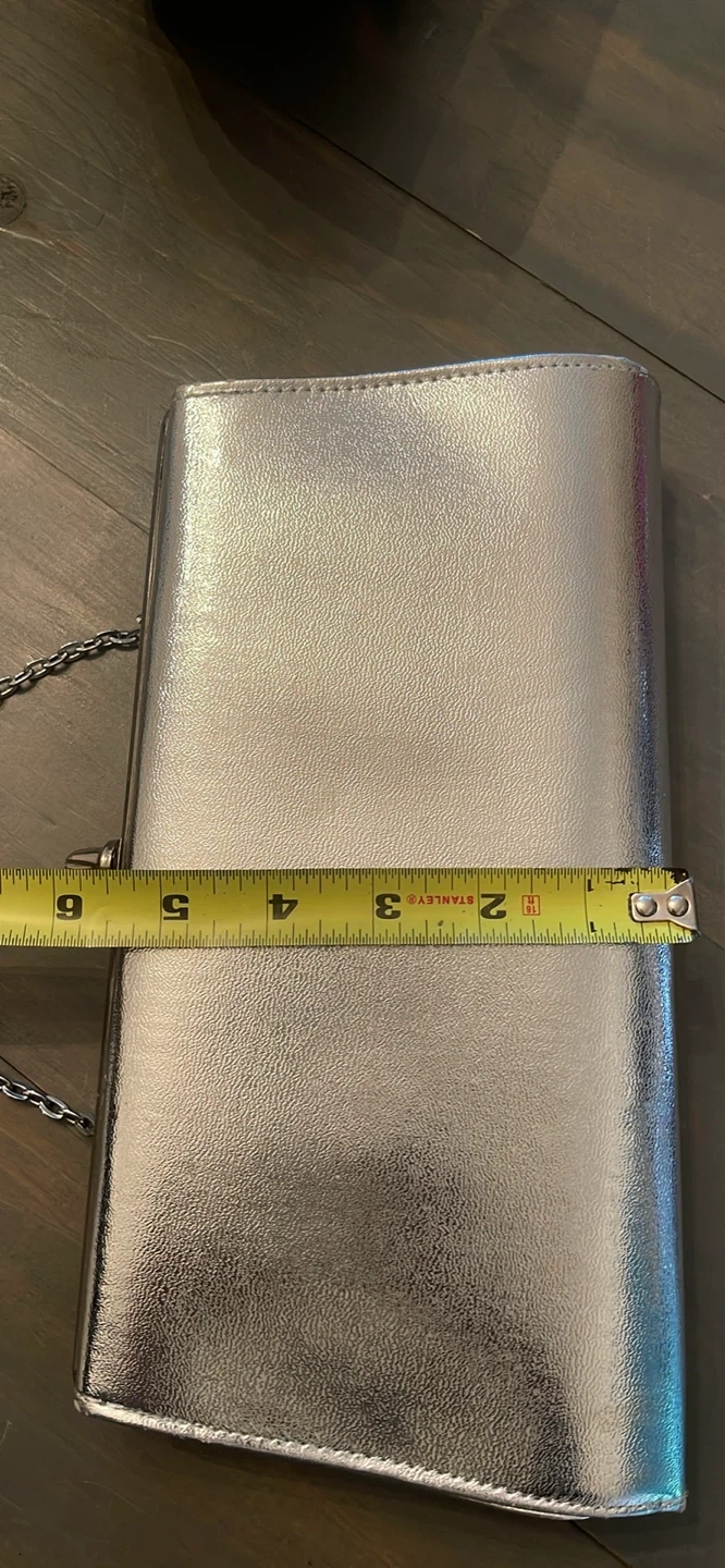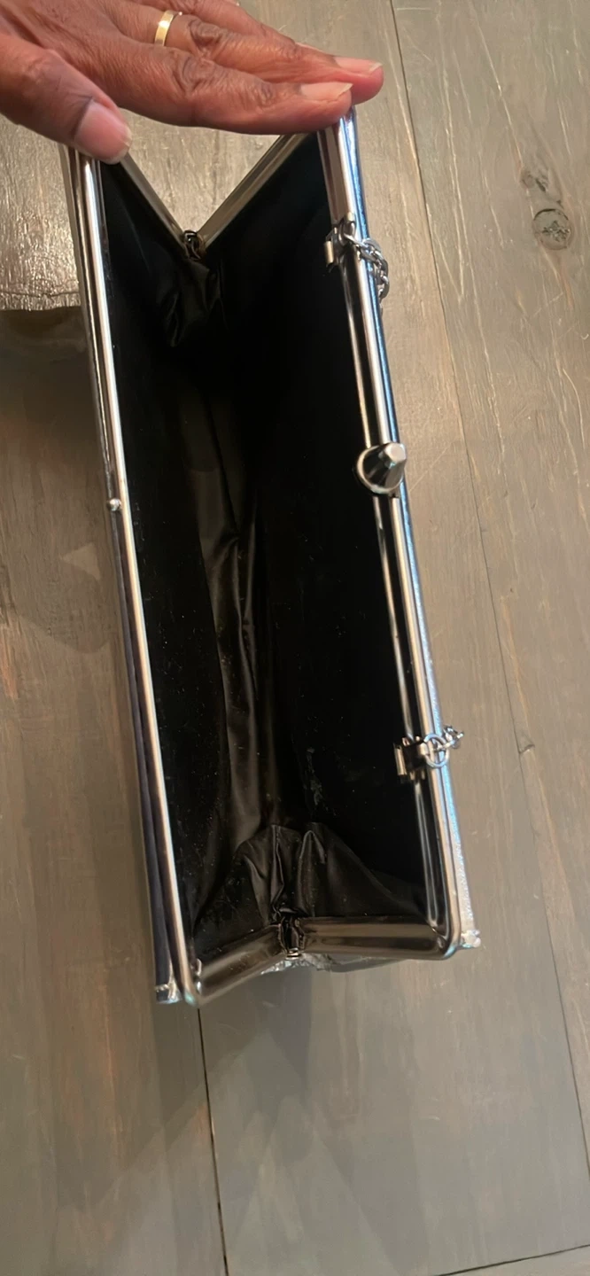 Selling a silver clutch purse. It's in great condition and perfect for a night out or special occasion. The purse is approximately 10 inches in height and 4 inches in width. Keele and Bloor
