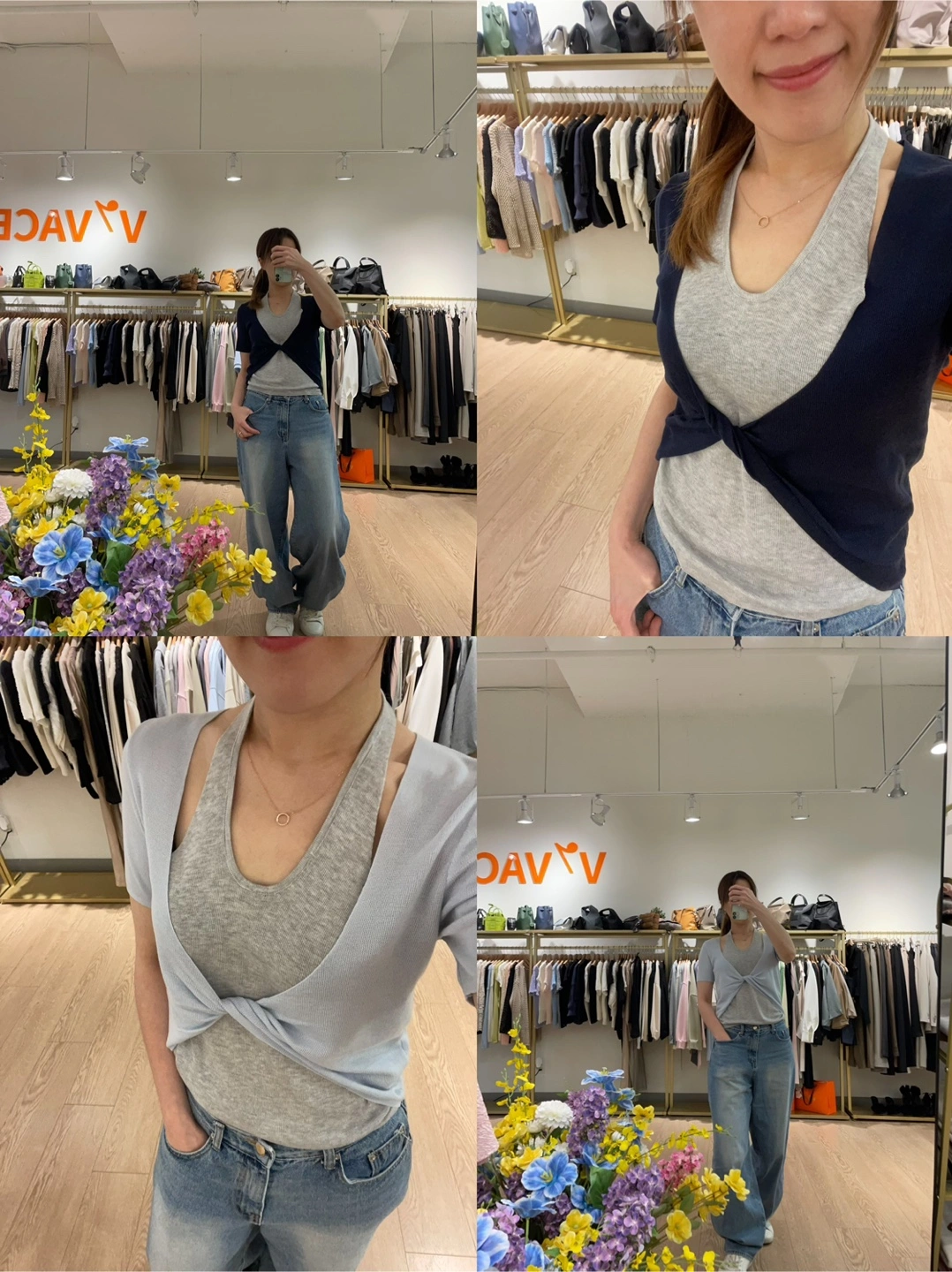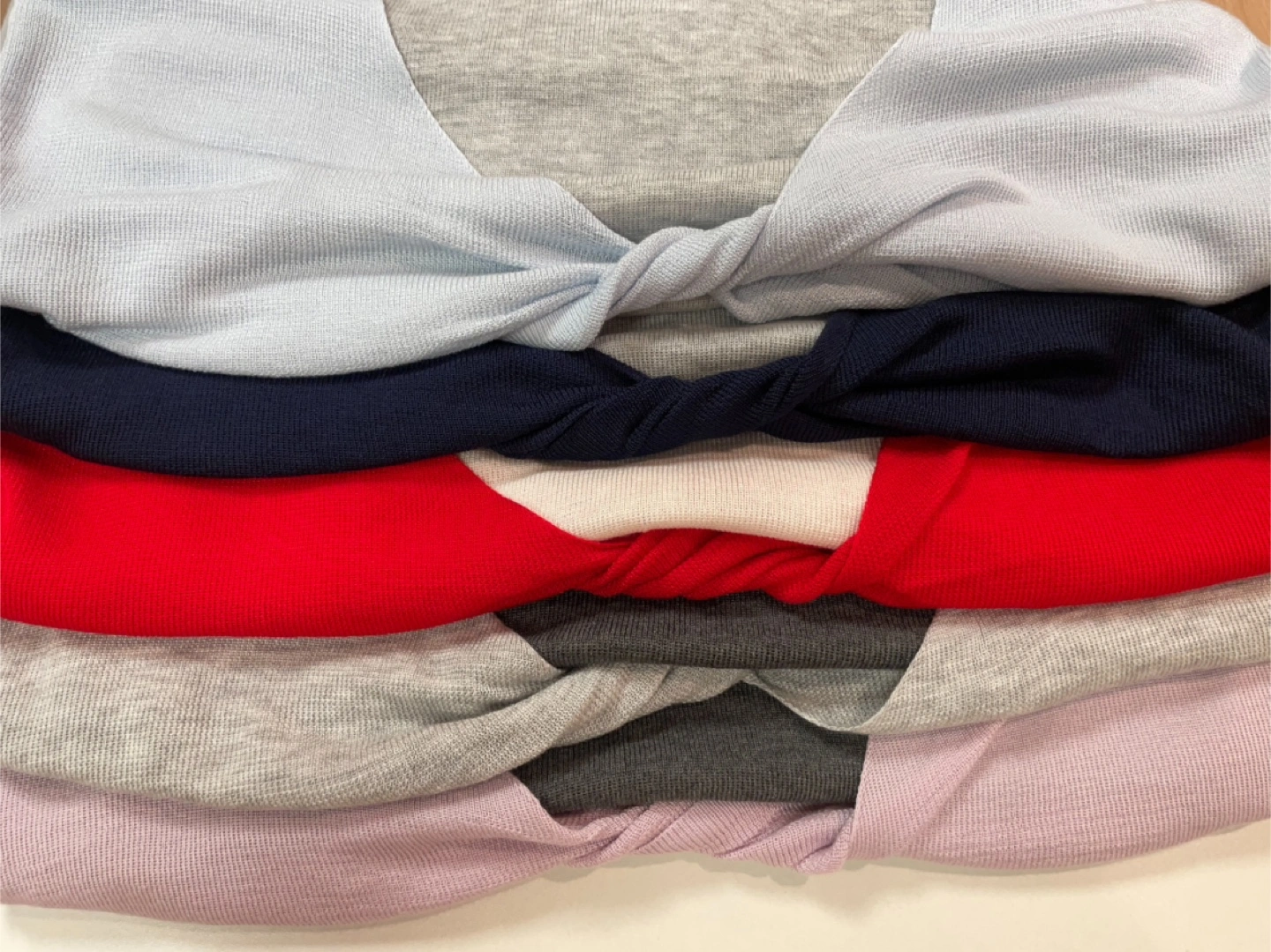 I'm selling a Vivace twist front 2 in 1 top! It's a stylish and versatile piece that can be dressed up or down. Perfect for layering or wearing on its own. Available in: -Light Blue (light grey inside) -Navy (light grey inside) -Red (white inside) -Lilac (dark grey inside) -Light Grey (dark grey inside) Measurements: Shoulder - 37cm Sleeve - 21cm Bust - 38.5cm Waist - 28.5cm Top Down Length - 48cm Fits XS-M $80 each, pick up in Aberdeen Square Richmond, or Burnaby BCIT area Multiple pieces available . Please dm for details and bulk purchases !