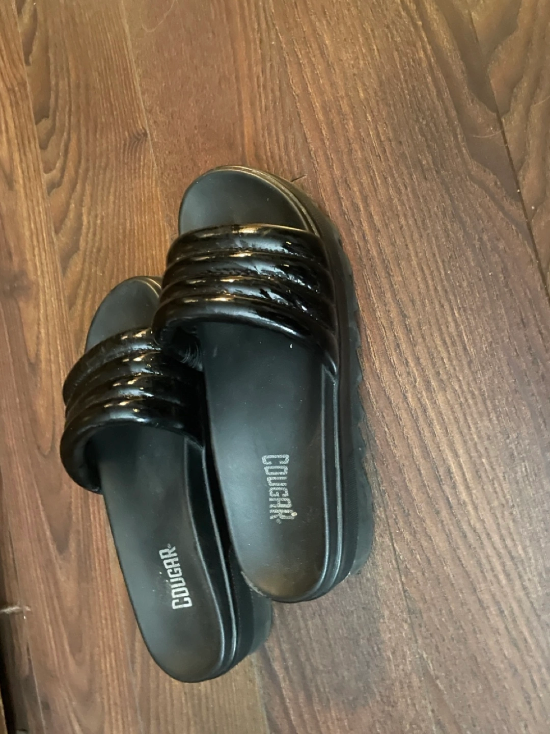 Selling a pair of Cougar black slides in size 8. They're perfect for slipping on and off and have a bit of a platform for some extra height. They are in great condition!