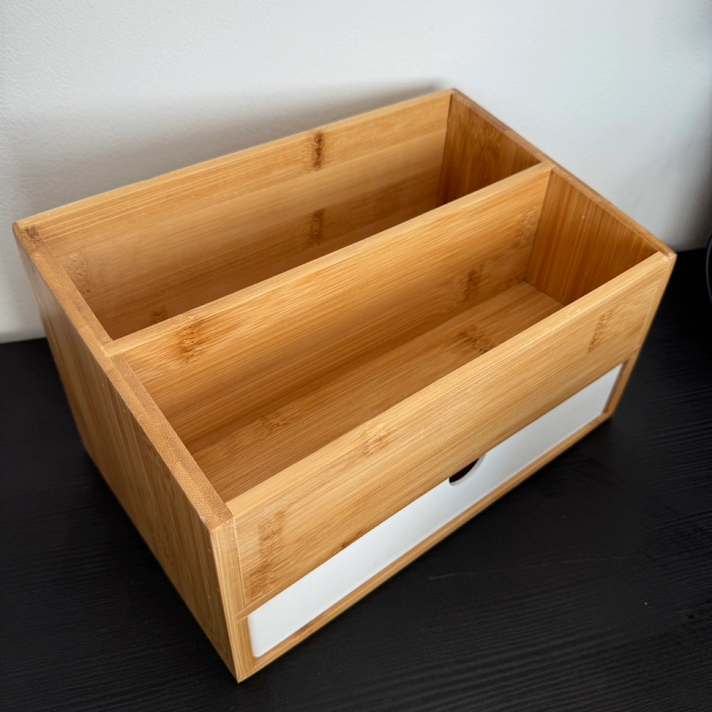 Here are some handy bamboo desk organizers to help keep your space tidy! They're in great shape and ready for a new home. Perfect for storing pens, paper clips, and other small items One left $15