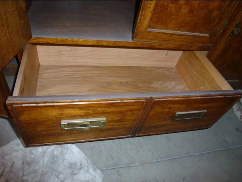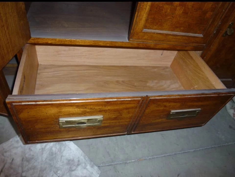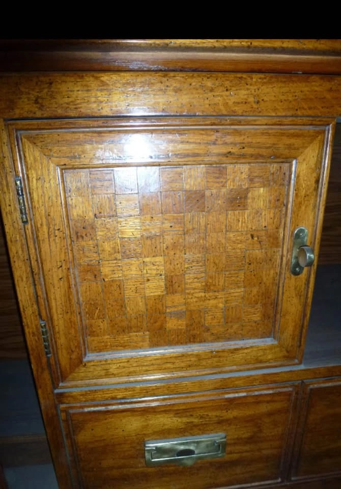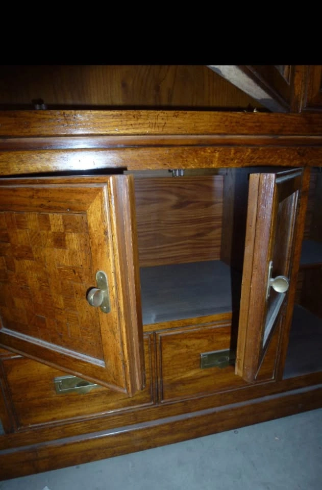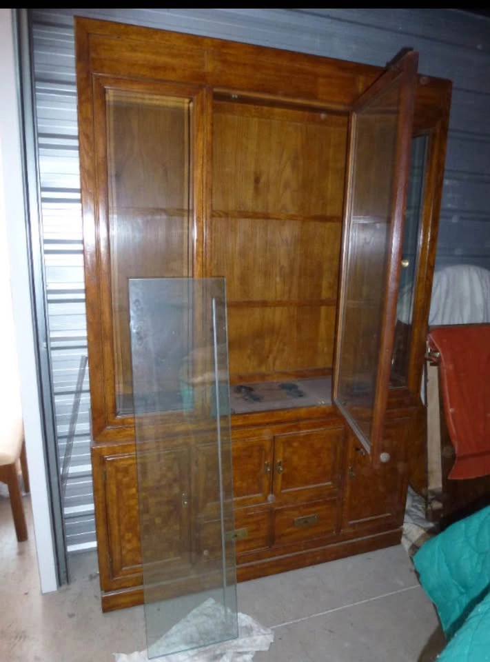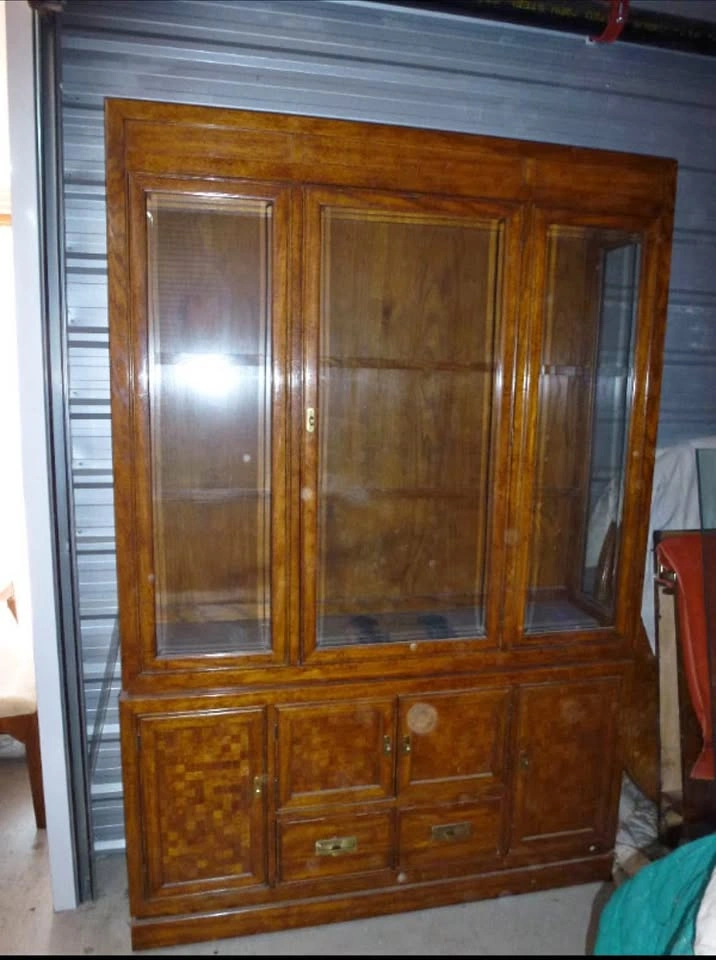 Thomasville Oak Display cabinet w 4 beveled glass shelves and lower cabinets and drawer. 15" deep X 80" tall X 54" wide. Lower portion has two cupboards and one drawer. Used but in immaculate condition. Asking $1399 OBO. This offering is part of a series of items being liquidated from a storage locker. Pick up near Piegan Trail SE. Feel free to message if you have any questions!