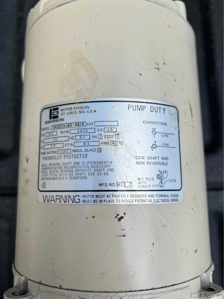 Emerson Pump Duty Motor Model# SA55CX-JAR-4814 115V 3450 RPM 1HP