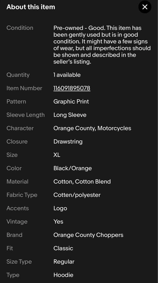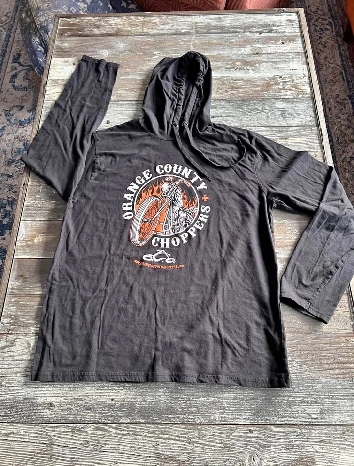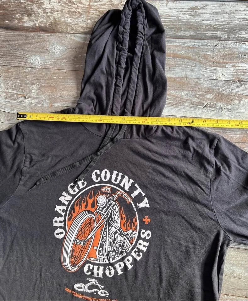 Pick up near Southcentre mall, if this ad is up, it is available. This pre-owned Orange County Choppers hoodie is a vintage gem for any biker or Y2K enthusiast. The classic fit and drawstring closure make it a comfortable and stylish choice for gym and training activities, or for everyday wear in fall, winter, and spring. Featuring a bold black and orange graphic print with flames and the Orange County Choppers logo, this long sleeve pullover is made from a cotton blend fabric with a hood for added warmth. The faded, grunge-inspired design adds a touch of old school charm to any outfit. Perfect for those who love the biotech and biker themes, this hoodie is a must-have for any wardrobe. Very Good Condition A couple little bonfire burns but not many and very small, not visible.