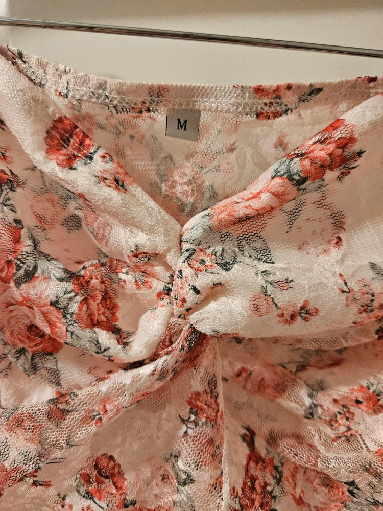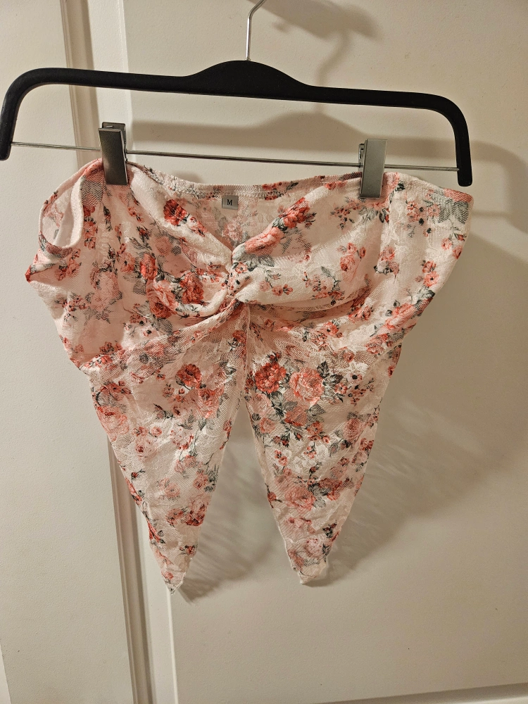 Selling a cute floral lace top in size M! It's in new condition and features a beautiful floral pattern on a delicate lace material. Perfect for adding a touch of elegance to any outfit