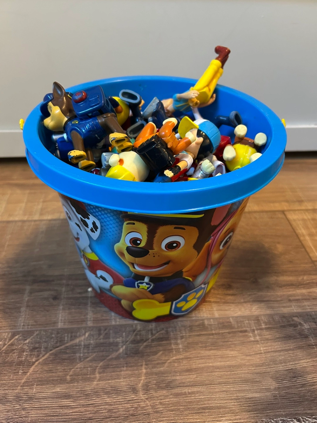 Selling a bucket full of Paw Patrol figures! Great for any Paw Patrol fan, this set includes a variety of characters and poses. Perfect for imaginative play! $2 each or Buy all for $80 and the bucket is free