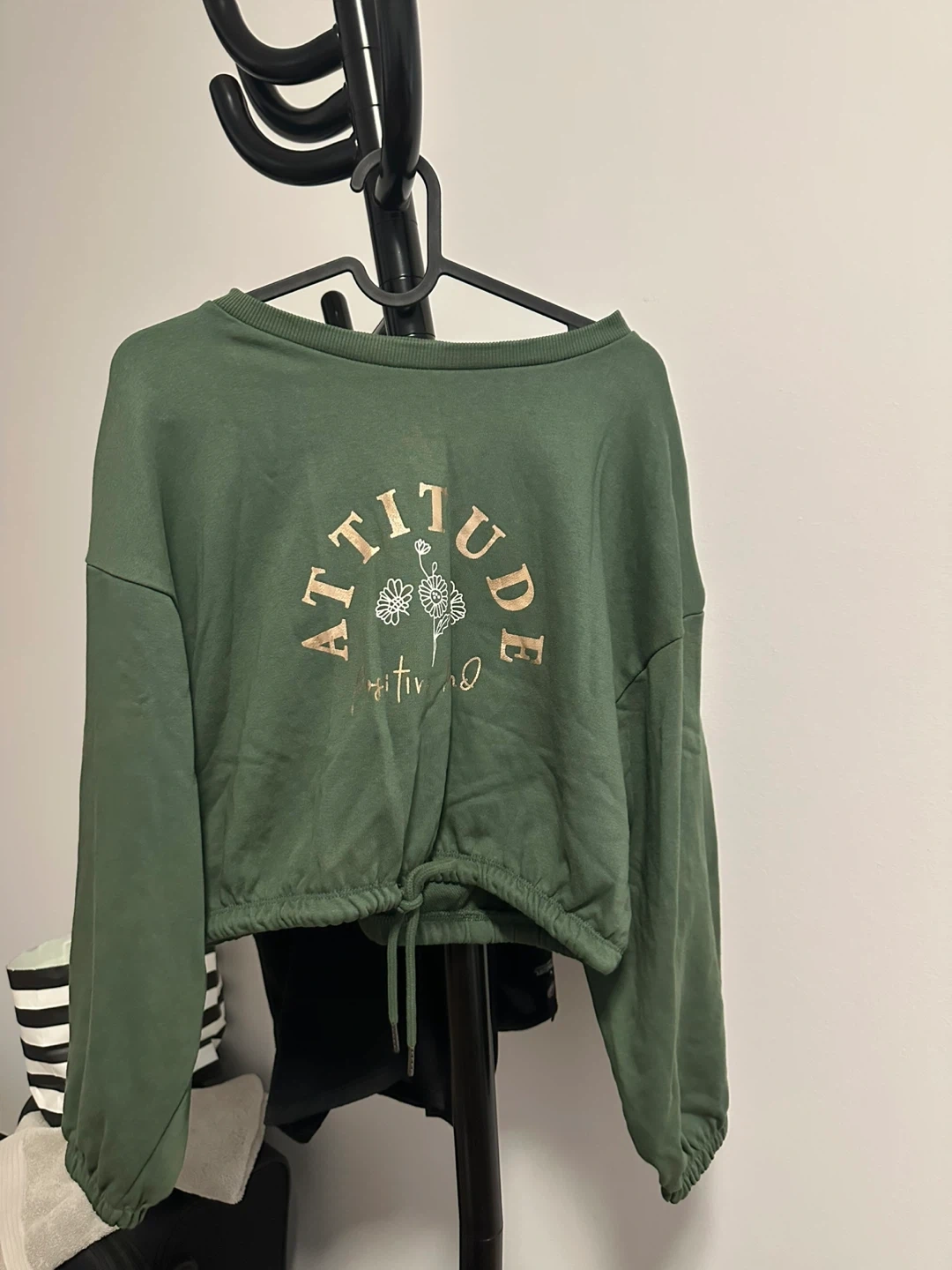 Selling a cute green crop top with an 'Attitude' design! It's in great condition and would be a lovely addition to your wardrobe