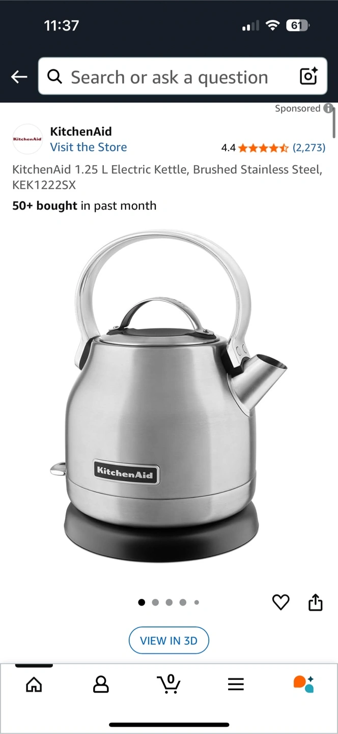 Selling a KitchenAid 1.25 L Electric Kettle in brushed stainless steel. Basically brand new without box. Got it on Amazon for $120. Fast heating, stylish for countertops.