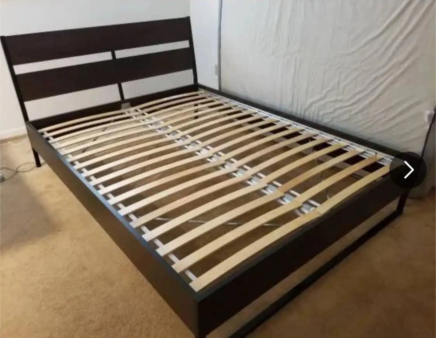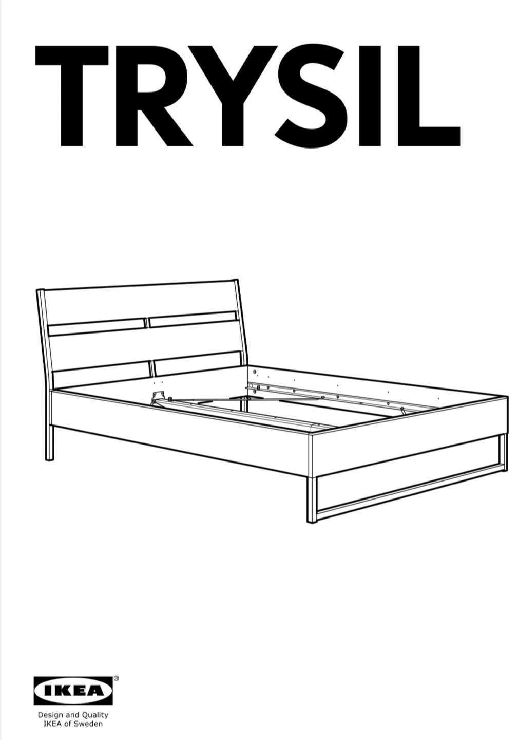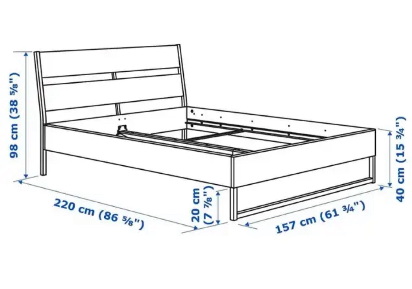 Selling an IKEA TRYSLIL bed frame in double size. It's a stylish and sturdy bed frame that's perfect for any bedroom. Dimensions: - Length: 220 cm (86 5/8") - Width: 157 cm (61 3/4") - Height: 98 cm (38 5/8") - Footboard height: 40 cm (15 3/4")